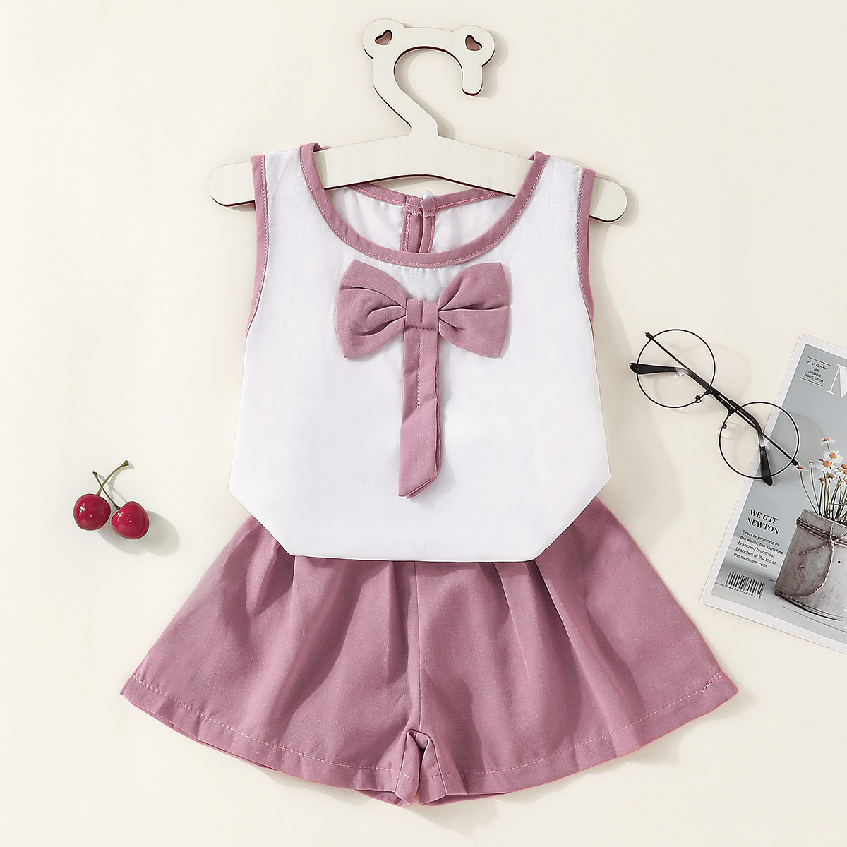 Toddler Girl Cute Casual Bow Knot Decor Tank Top & Shorts Wholesale