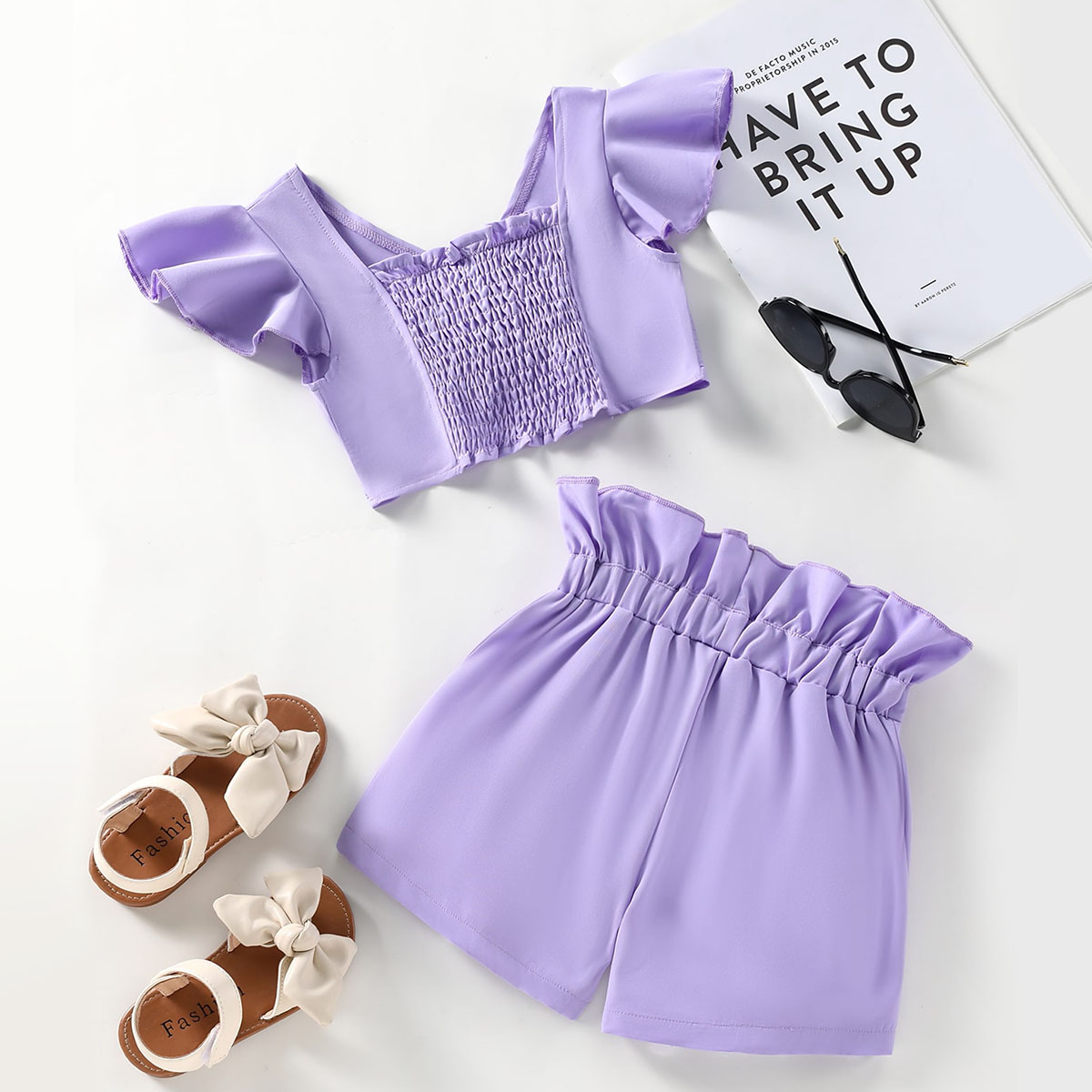 Toddler Girl Casual Solid Color Fly Sleeves Tank Top & Shorts Wholesale