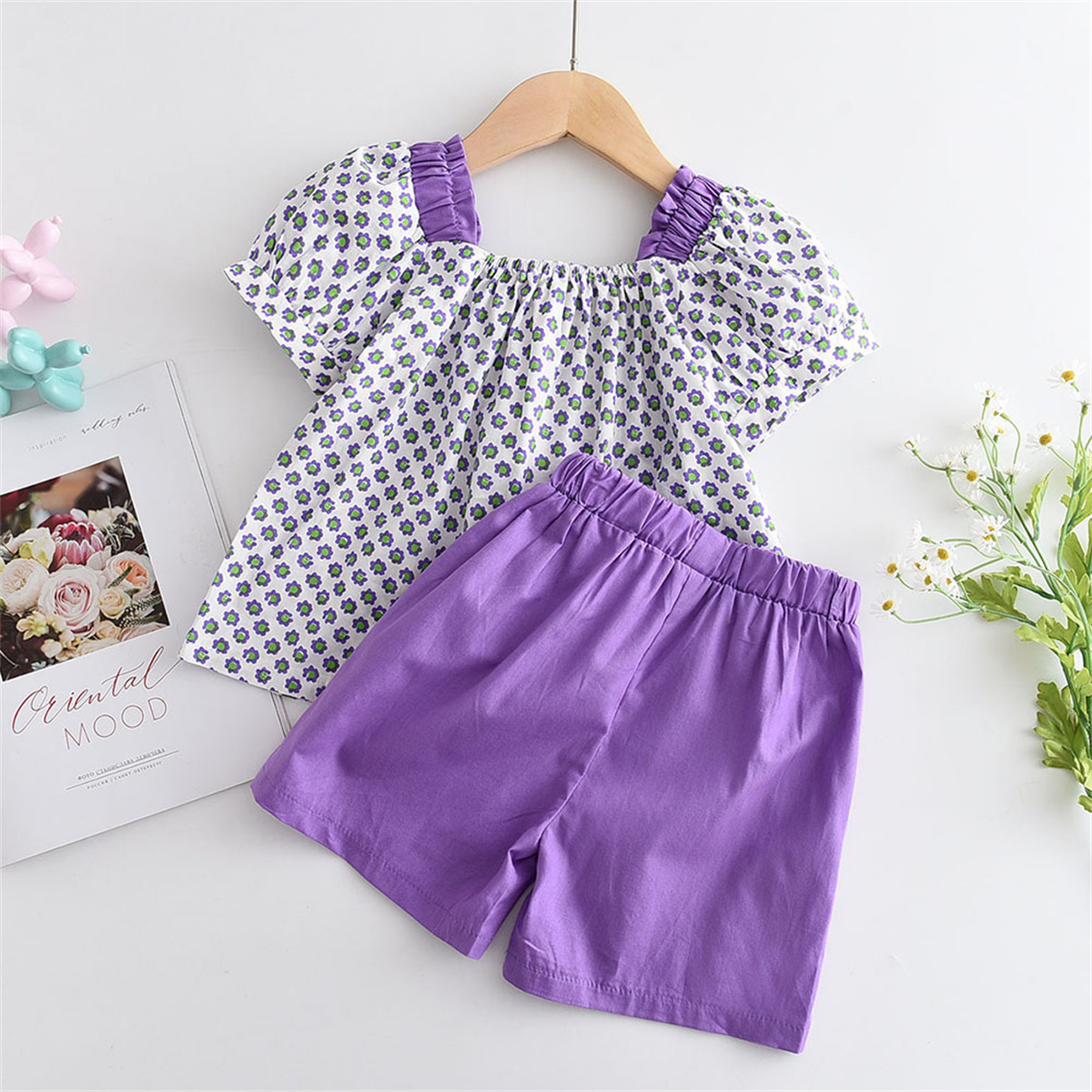 Toddler Girl Sweet Floral Square Collar Shirt & Shorts Wholesale