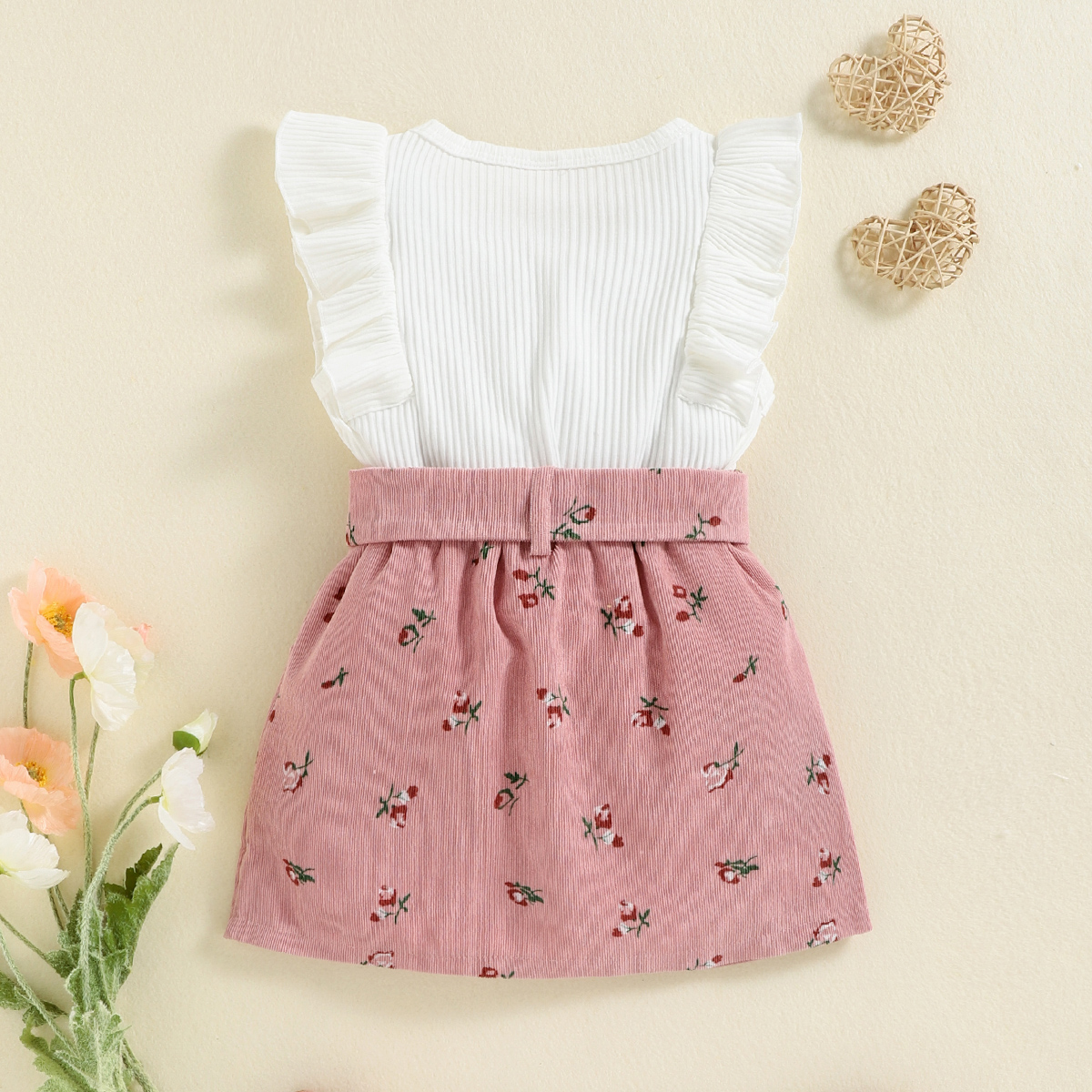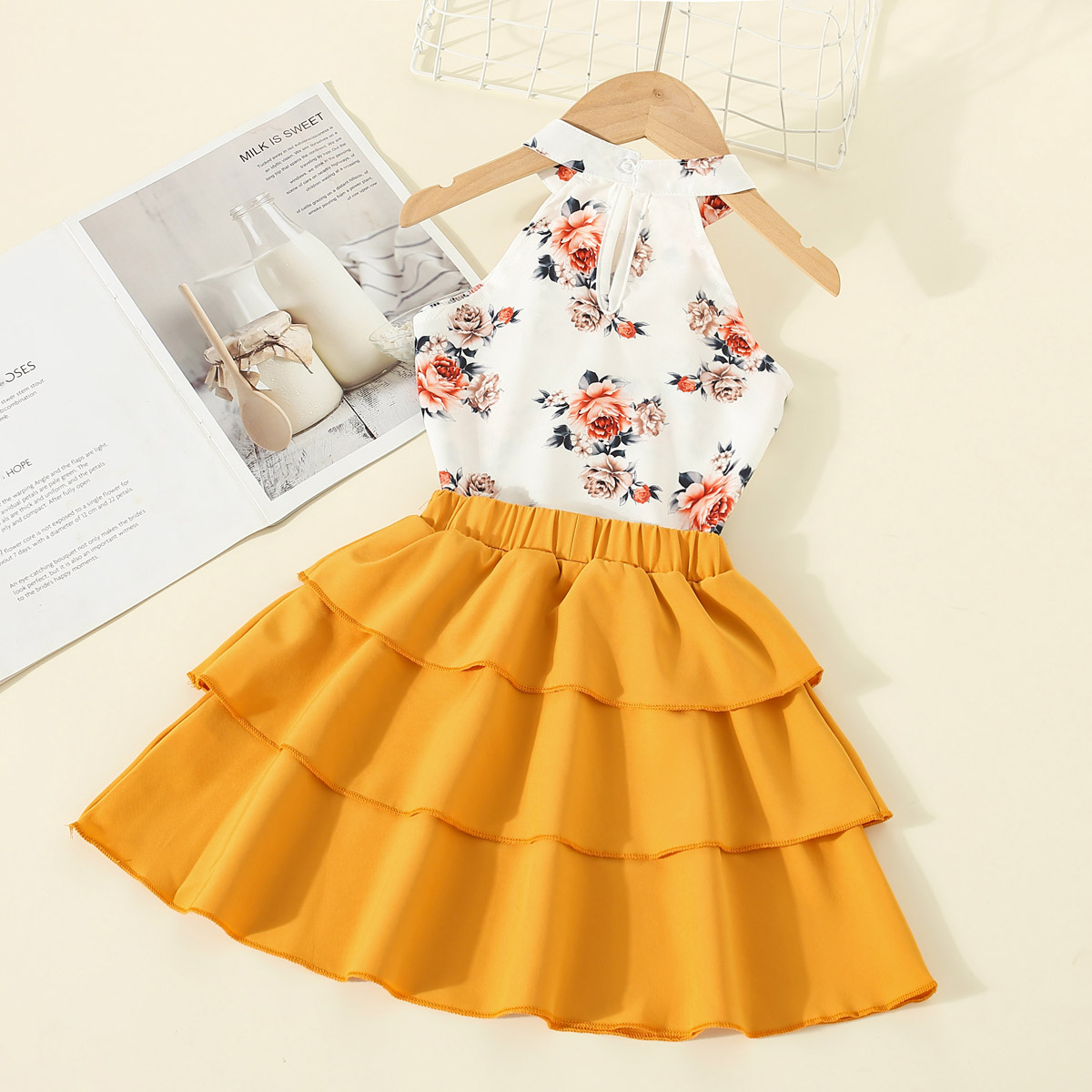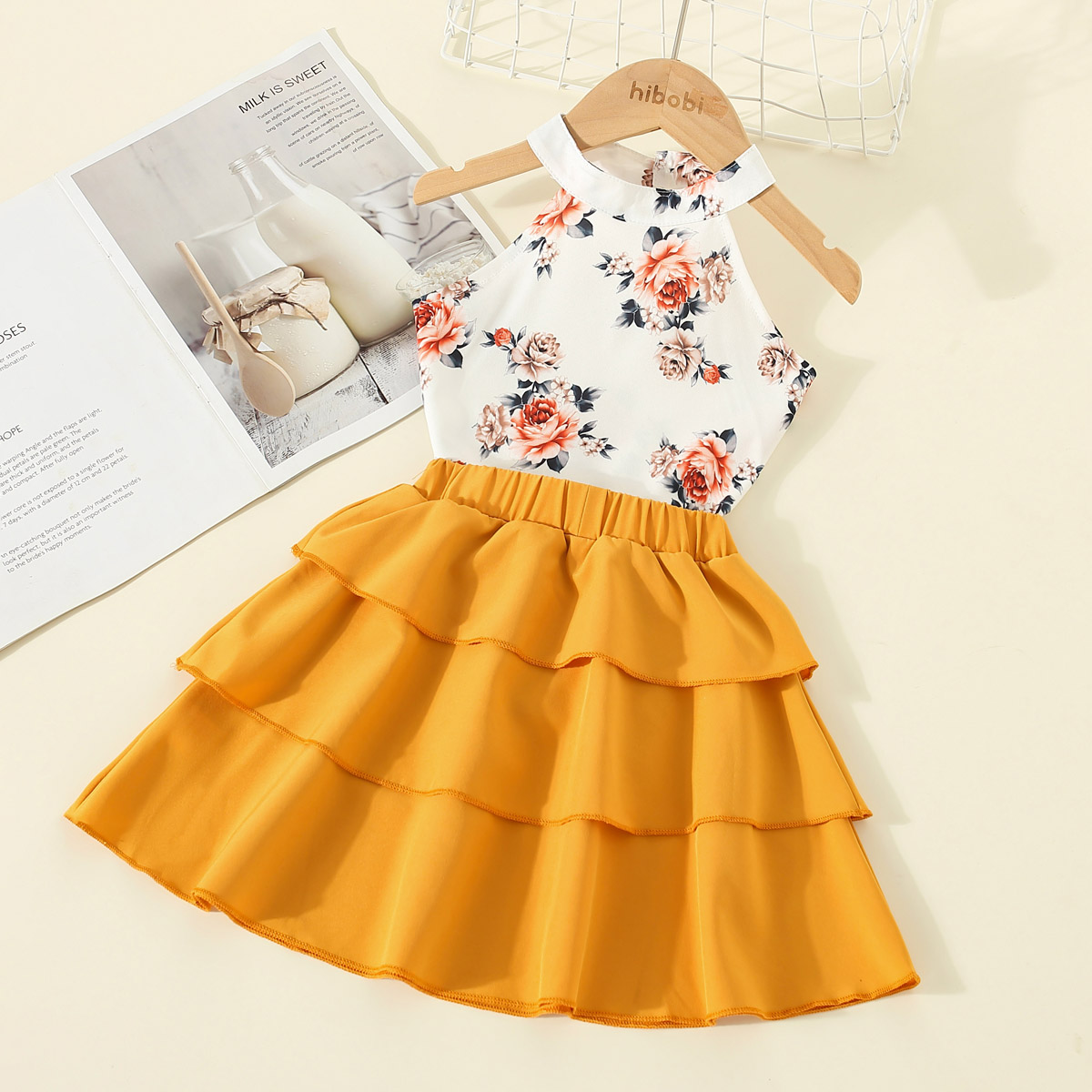Toddler Girl Halter Neck Floral Ruffles Top & Cupcake Dress Wholesale