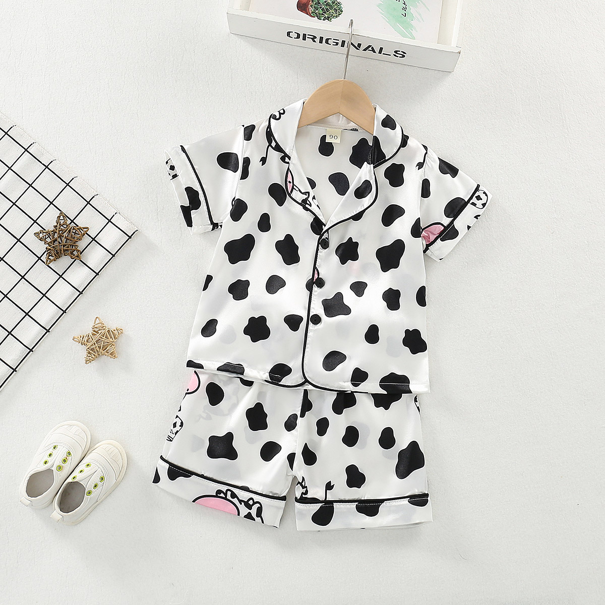 Toddler Girl Pajamas Bear Lapel Pajamas Plaid Top & Shorts Wholesale