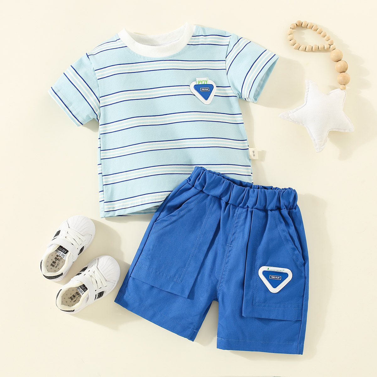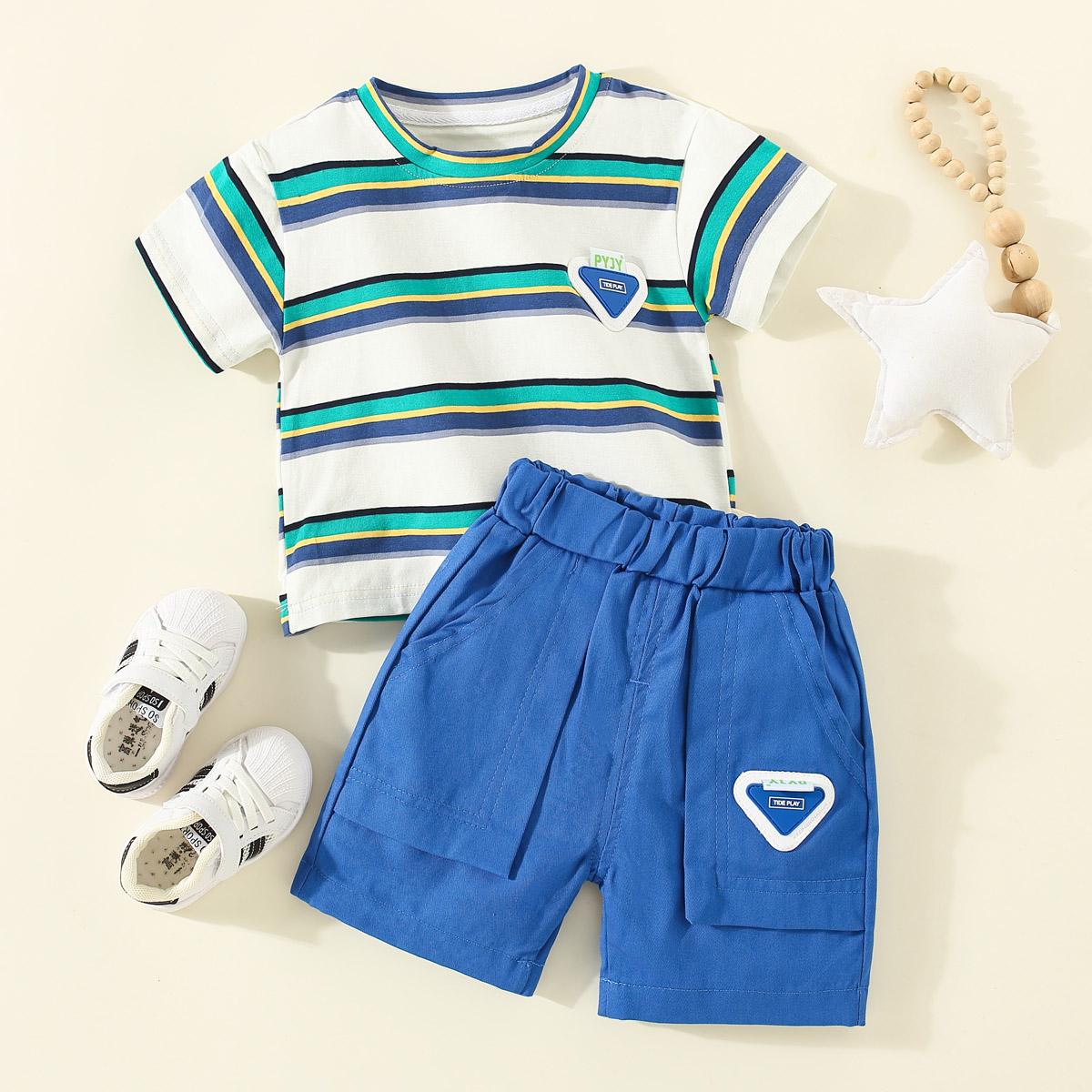 Toddler Boys Stripes Color-block Horizontal Stripes Top & Shorts Wholesale