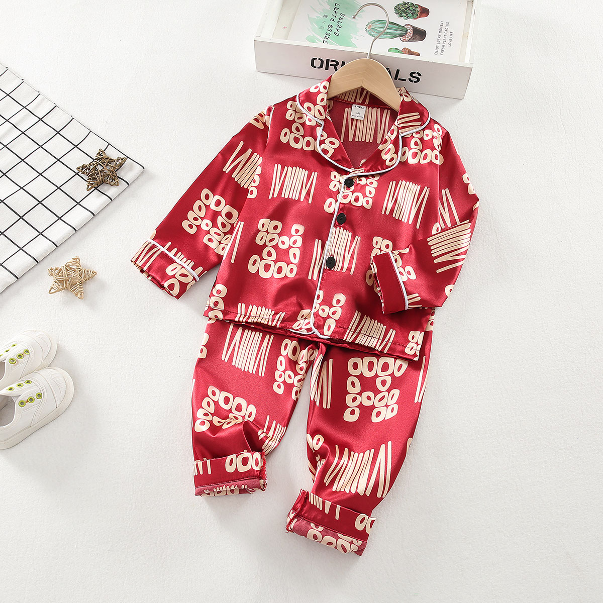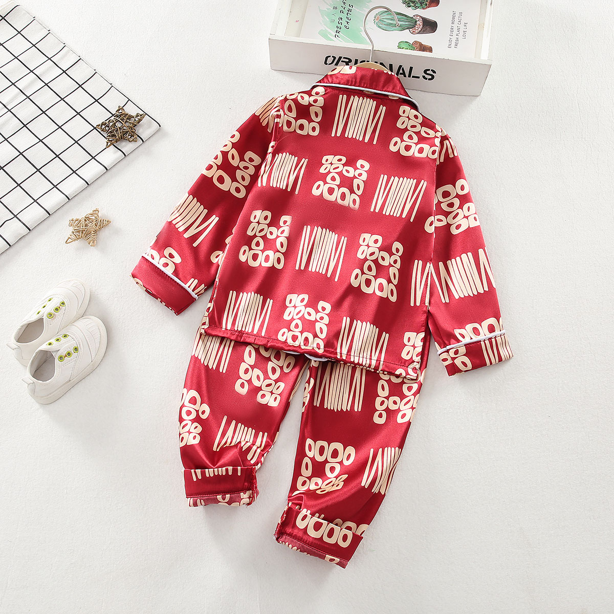 Toddler Girl Lapel Geometric Pajamas Sets Top & Pants Wholesale