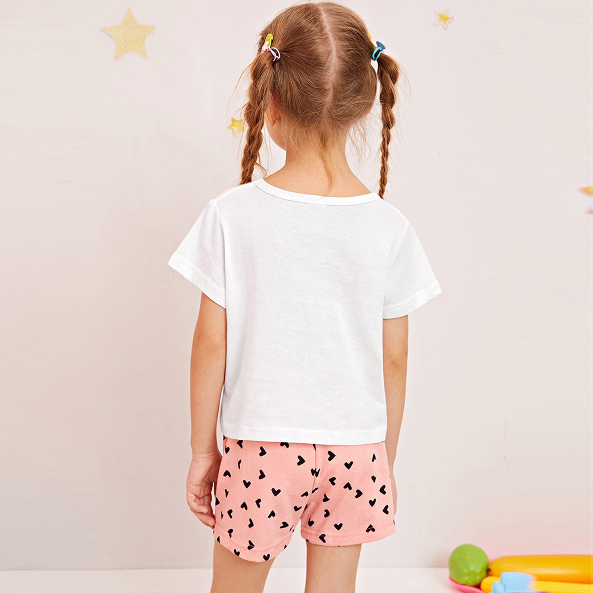 Toddler Girl Heart-shaped Dinosaur Pajamas Top & Shorts Wholesale