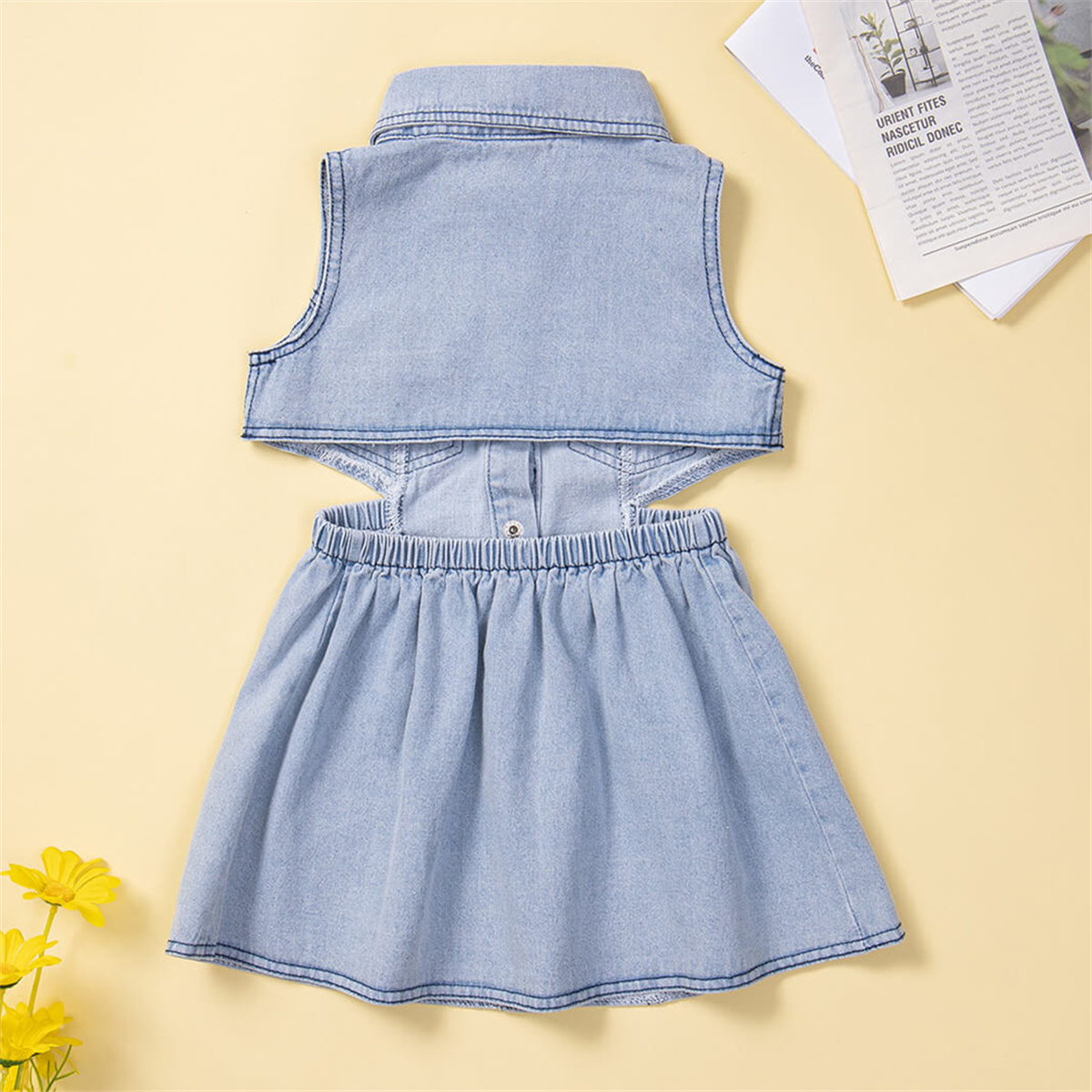 Toddler Girl Lapel Denim A-line skirt Denim Dress Wholesale