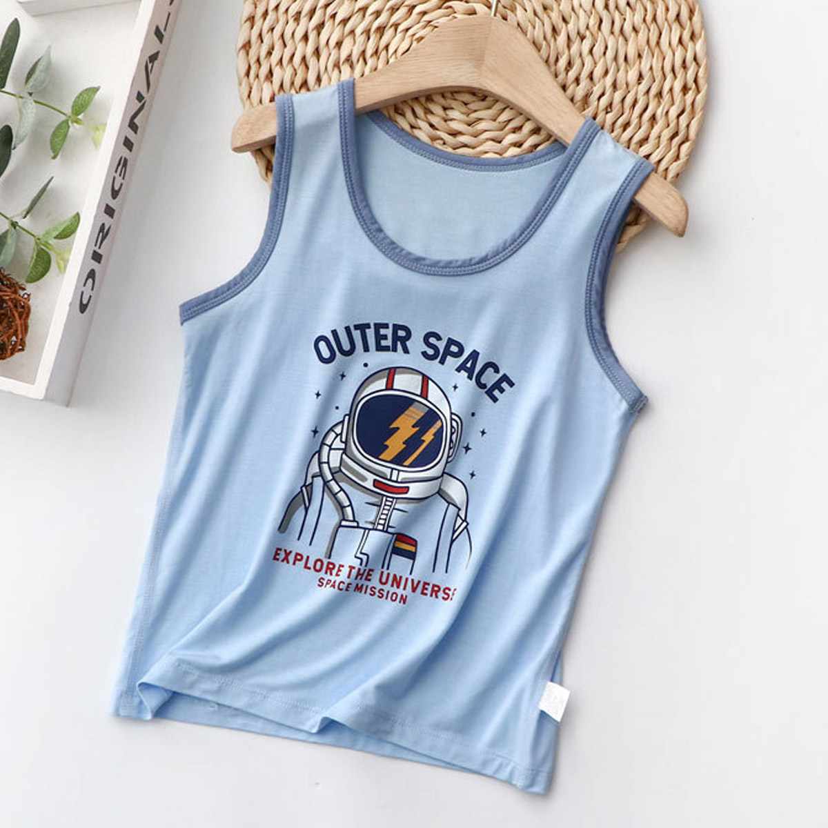 Boy Summer Cartoon Print Modal Vest Pajamas Wholesale