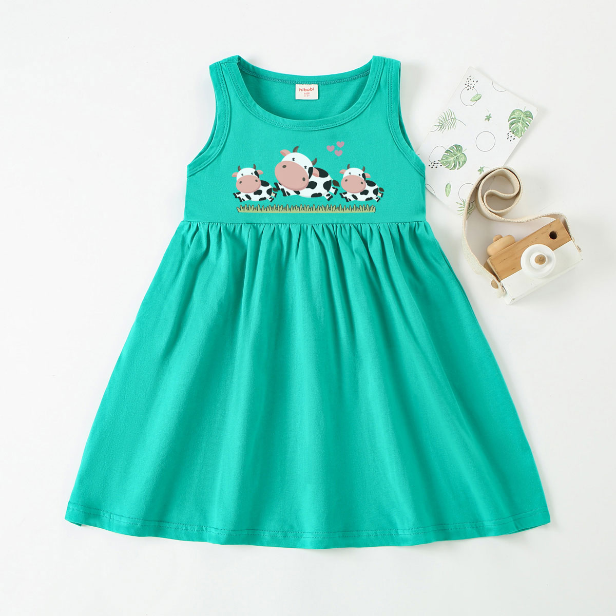 Toddler Girl Baby Basic Three Cows Print Sleeveless Dress Wholesale