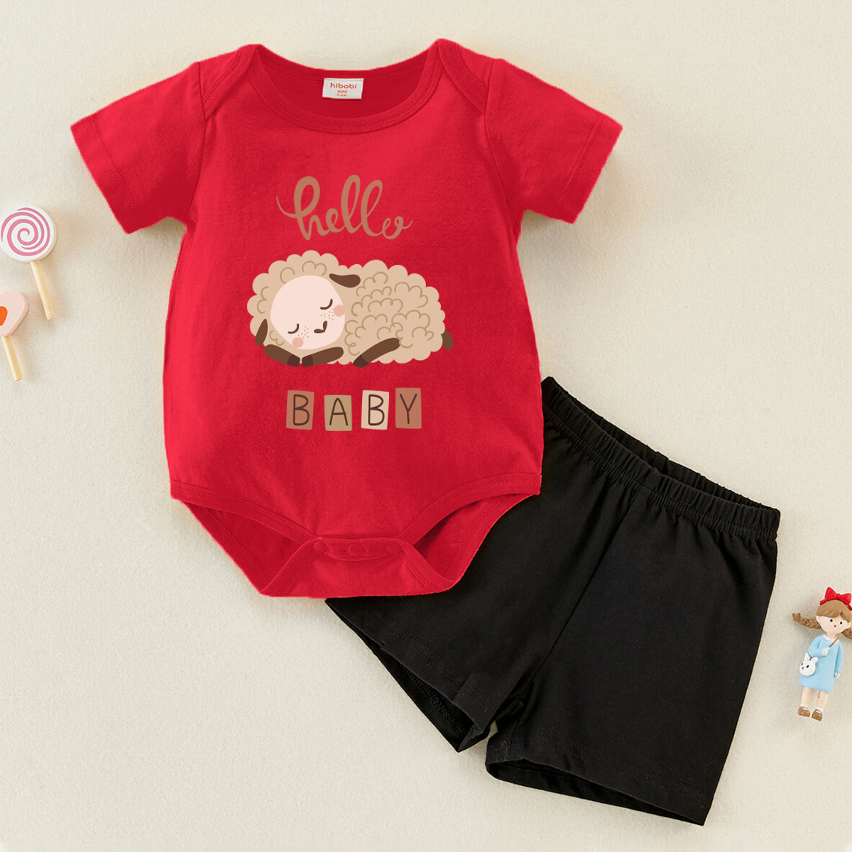 hibobi Baby Basic Sleeping Sheep Print Short Sleeves Suit Wholesale