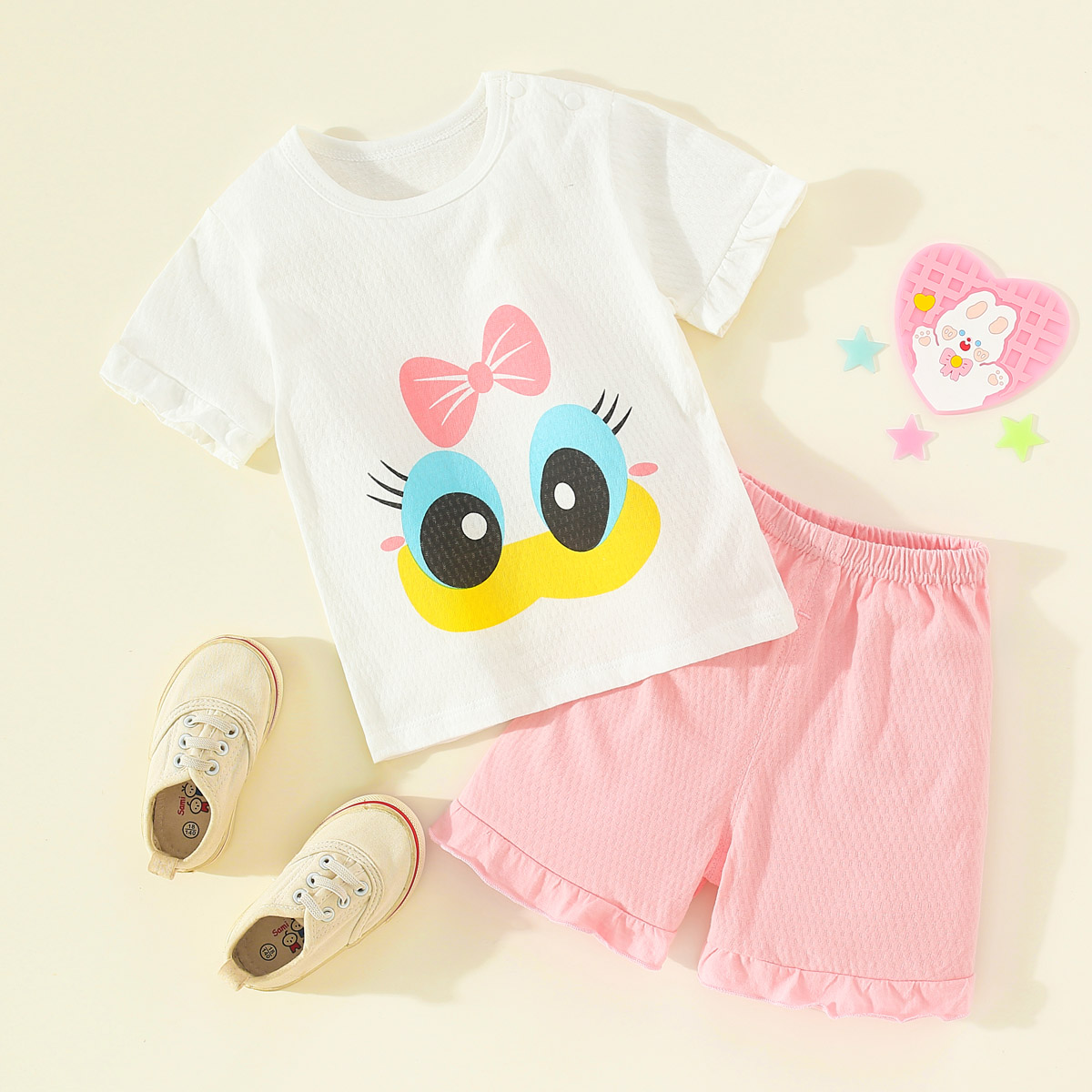 Toddler Girl Baby Basic Moon Lamb Print Short-sleeved T-shirt Suit Wholesale