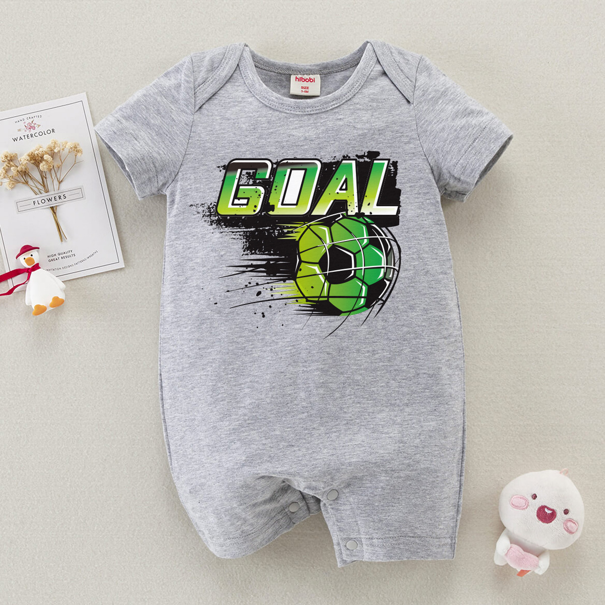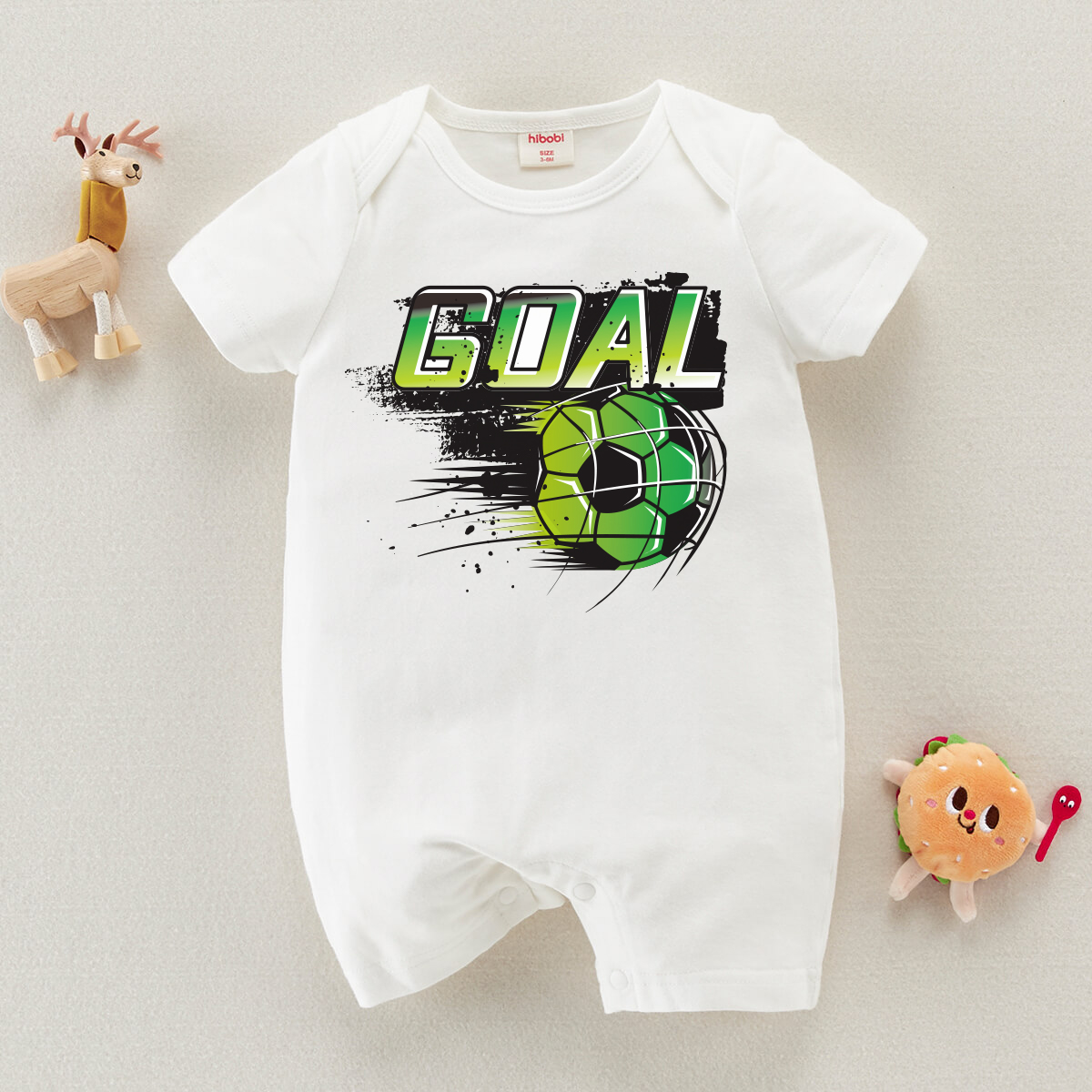 hibobi Boy Baby Colorful Football Shot On Goal Print Short Sleeve Bodysuit Wholesale