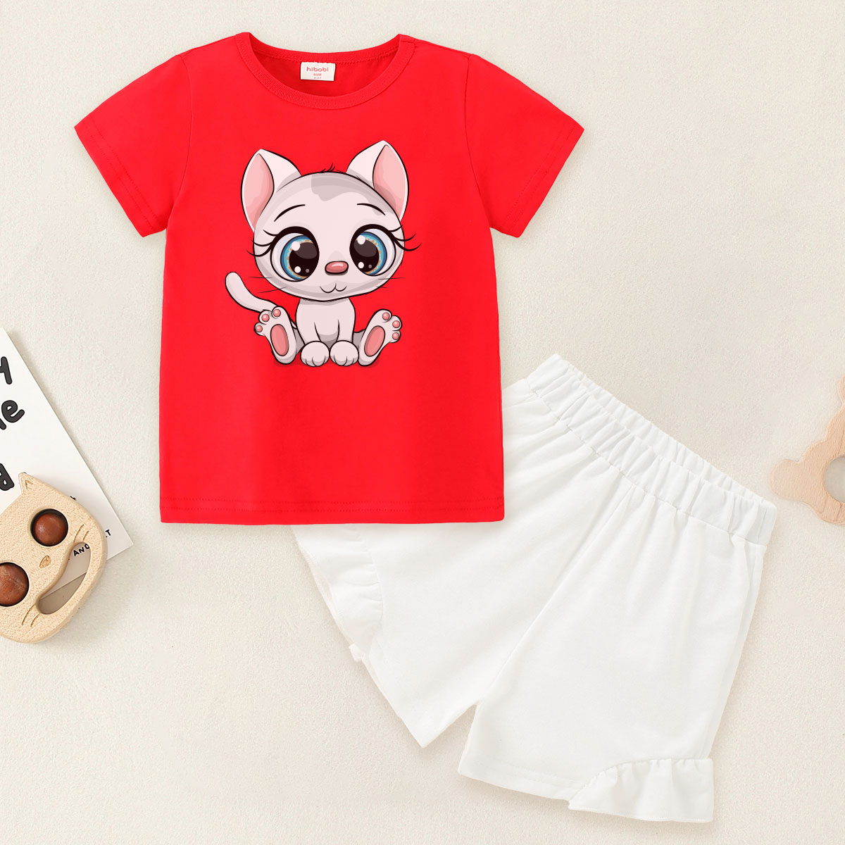 Toddler Girl Baby Sitting Cat T-shirt Suit Wholesale