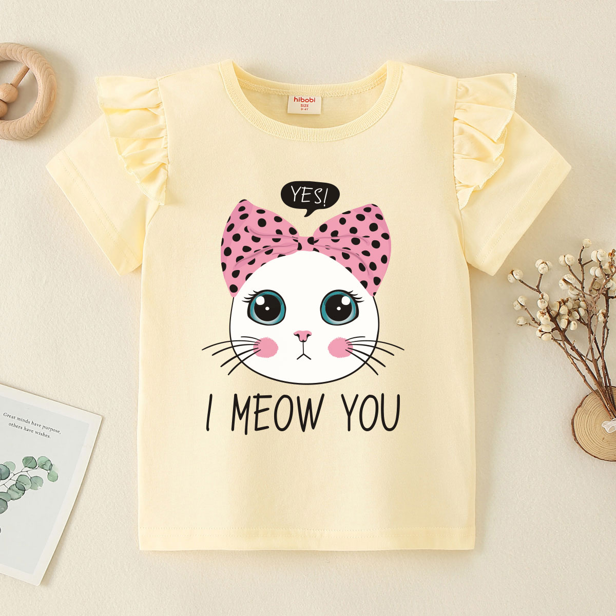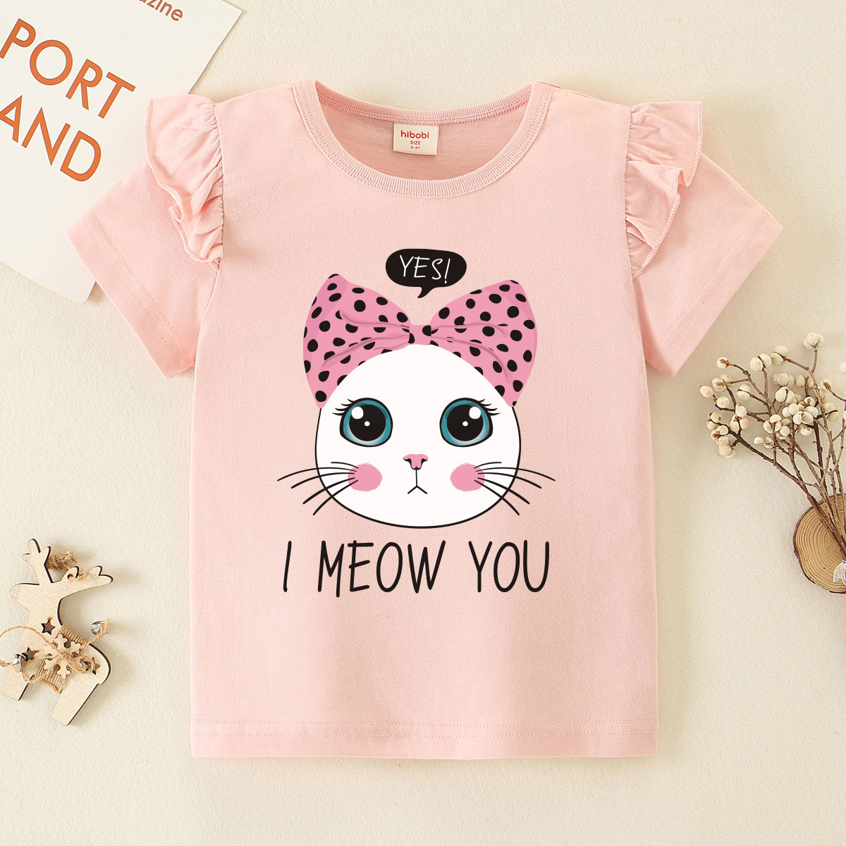 Toddler Girl Baby Bow Tie Cat Fly Sleeve T-shirt Wholesale