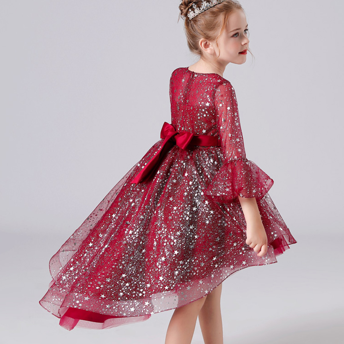 Kids Girls Bowknot Star Mesh Catwalk Trailing Dress Wholesale
