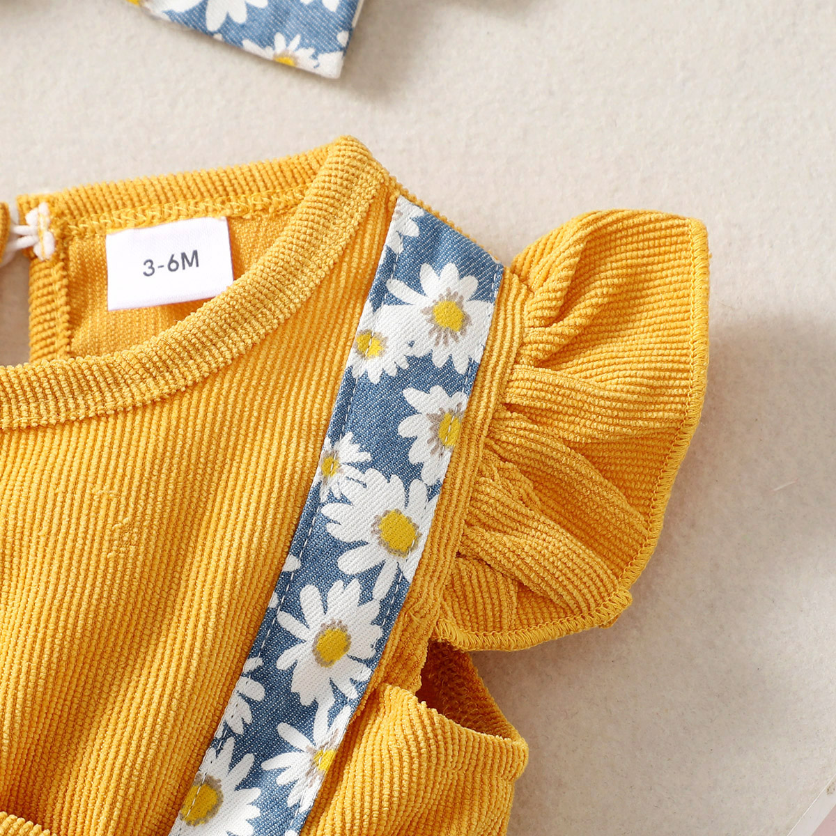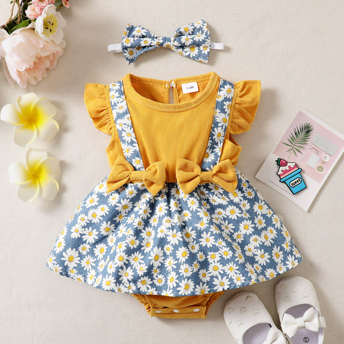 Baby Girl Ruffle-sleeve Patchwork Floral Bowknot Bodysuit with Headband Wholesale