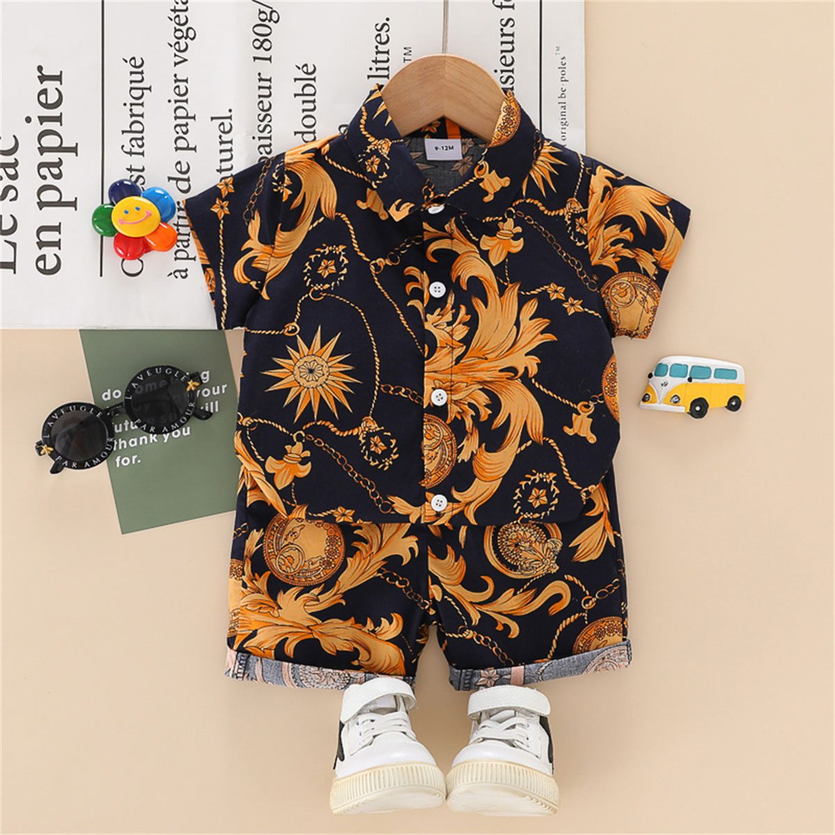 Baby Boy Short Sleeve Shirt And Tropical Print Shorts Wholesale