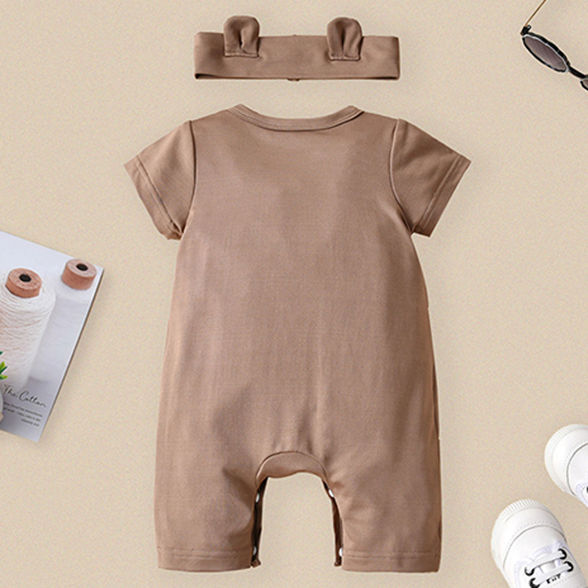 Baby Short Sleeve Animal Print Bodysuits with Headband Wholesale