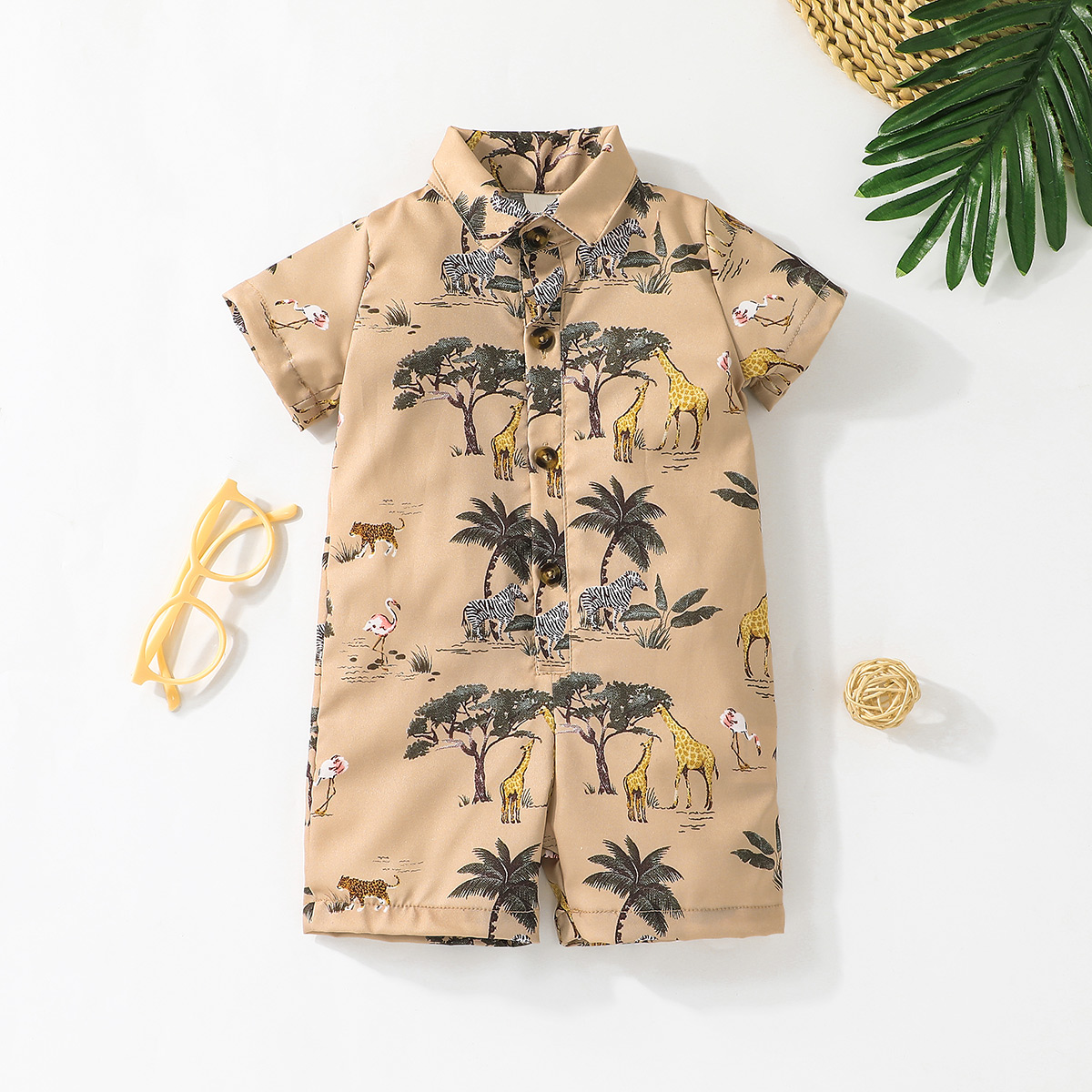 Baby Boy Short Sleeve Shirt Collar Tropical Print Bodysuits Wholesale