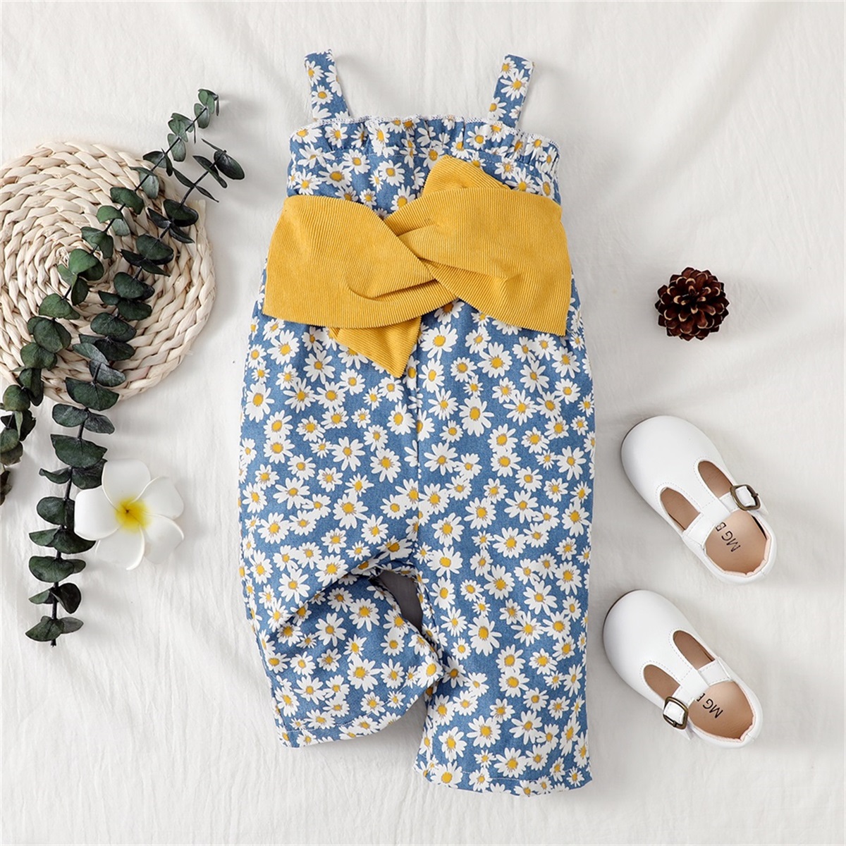 Baby Girl Floral Print Bowknot Overalls Pants Wholesale
