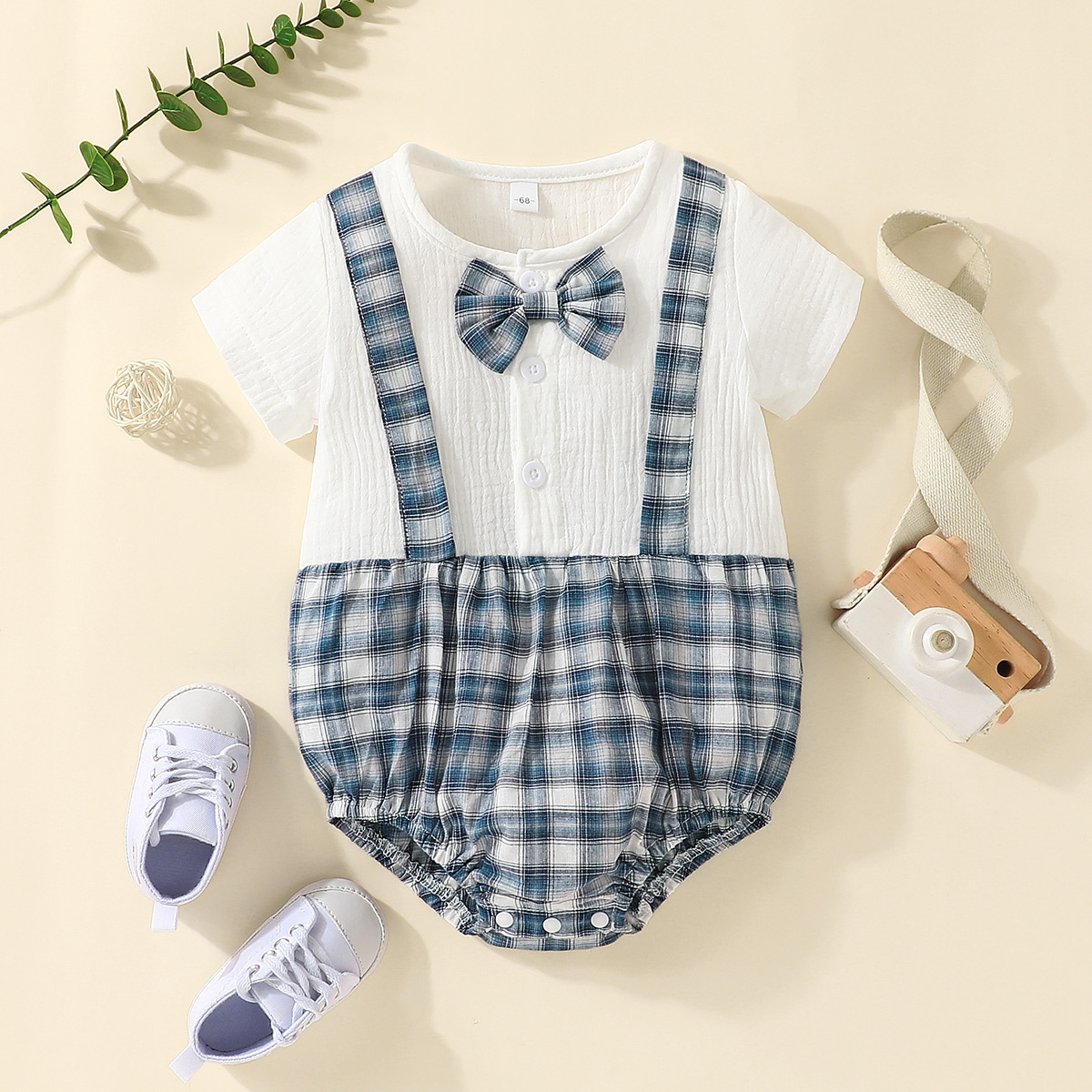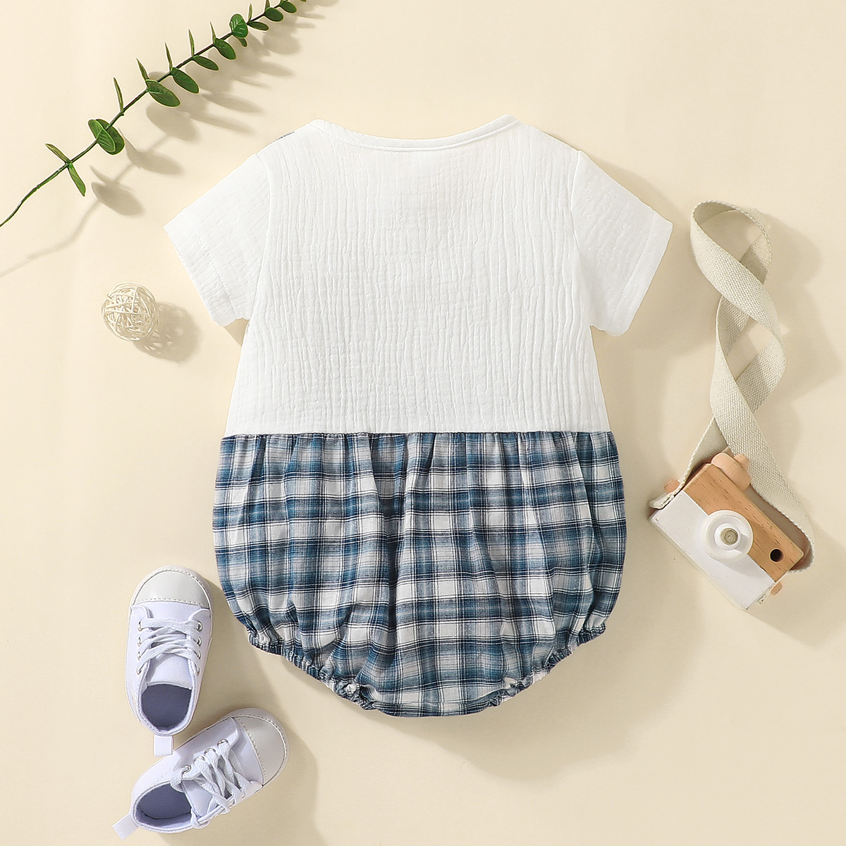 Baby Boy Short Sleeve Color-block Plaid Bodysuit Wholesale