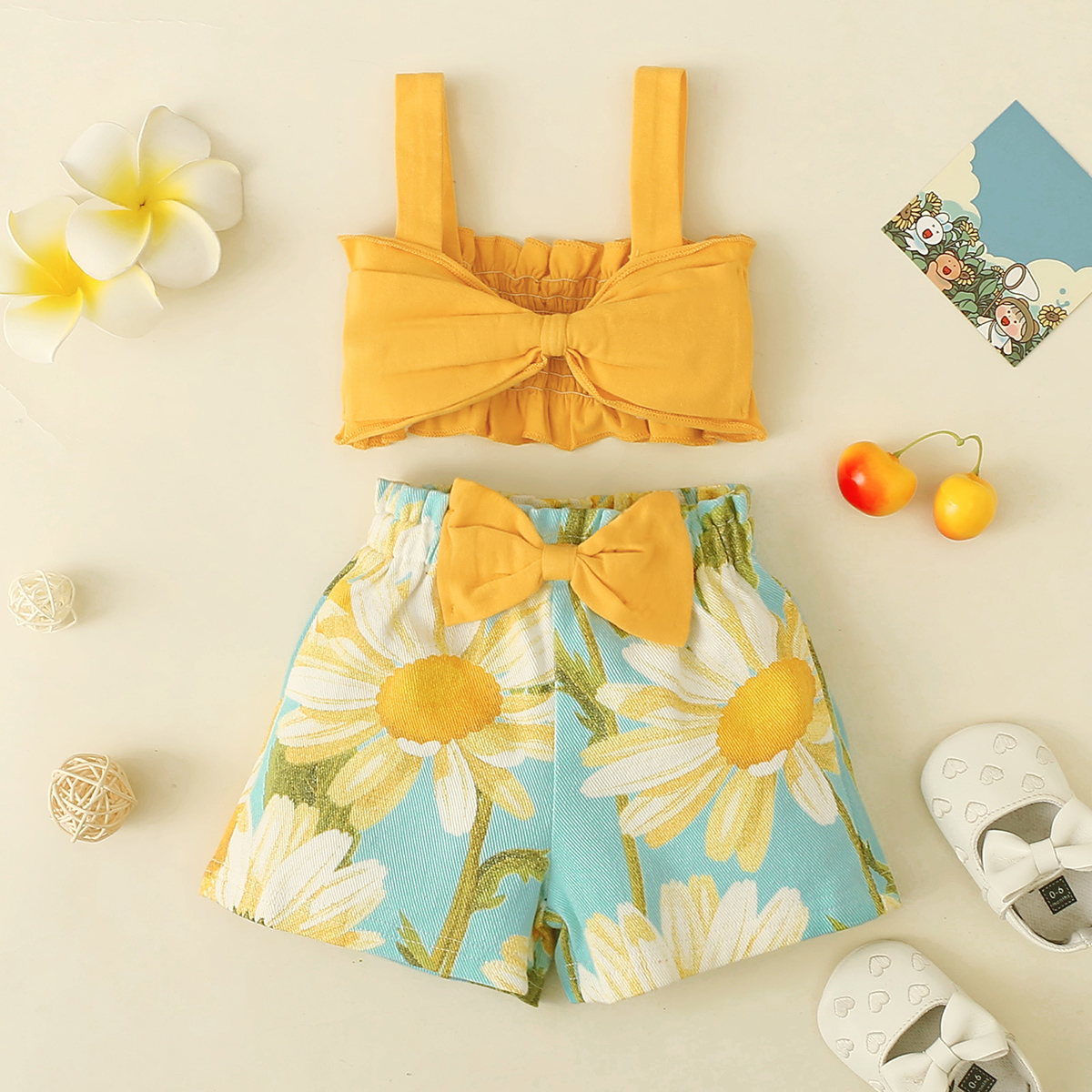 Baby Girl Sling Bowknot Top And Floral Print Shorts Wholesale