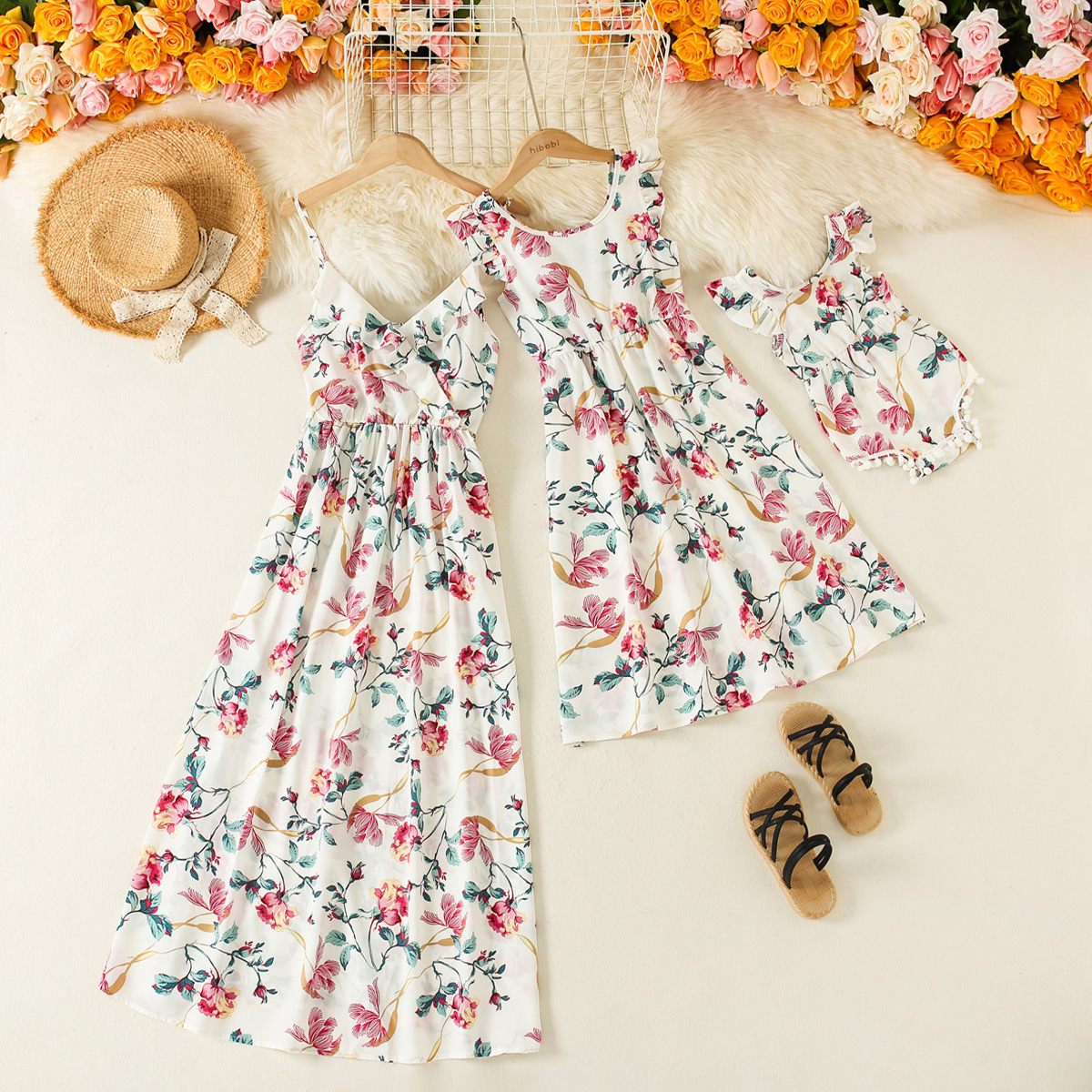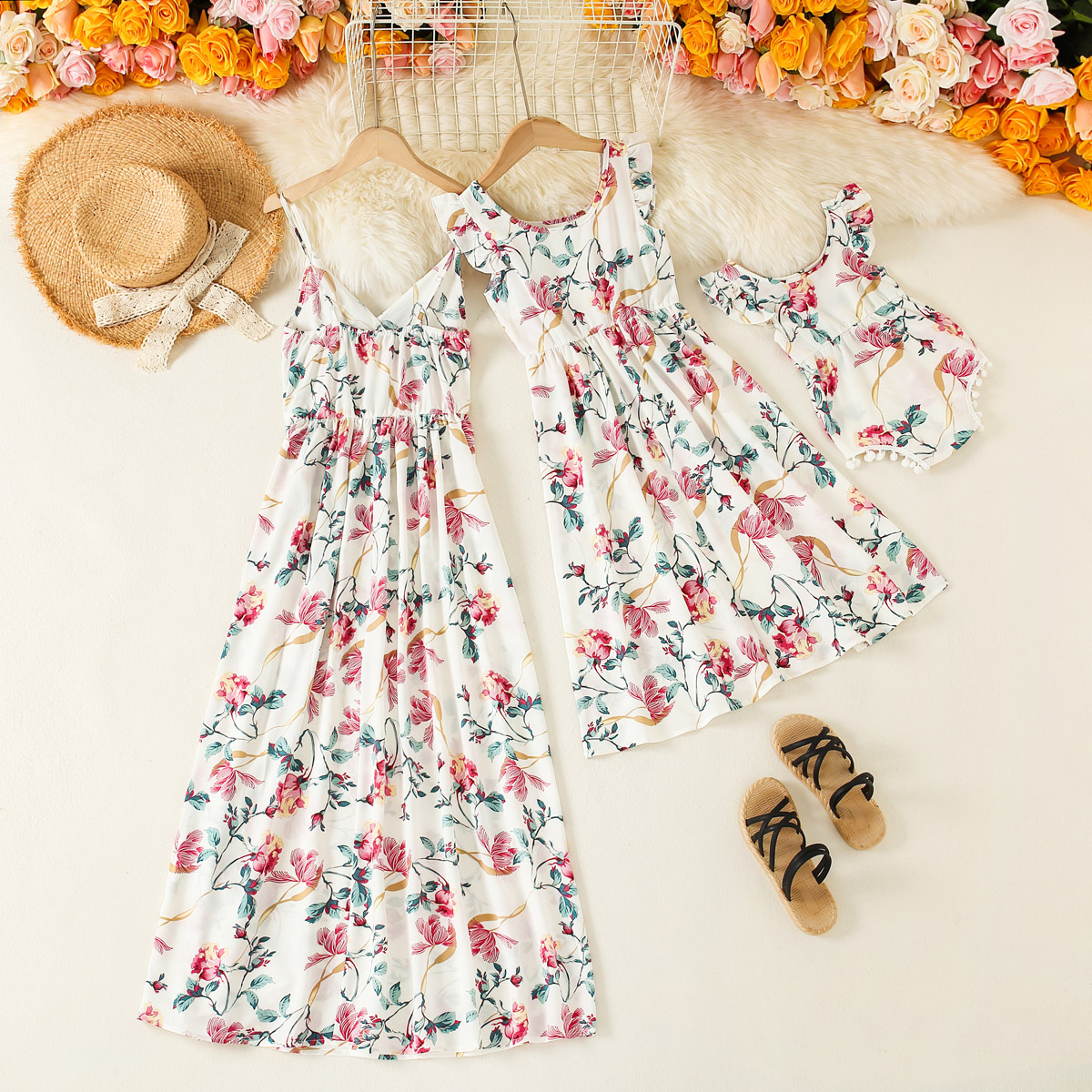 Sweet Floral Print Sleeveless Dress for Mom and Me Wholesale