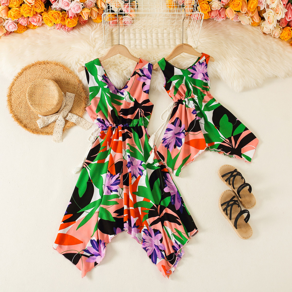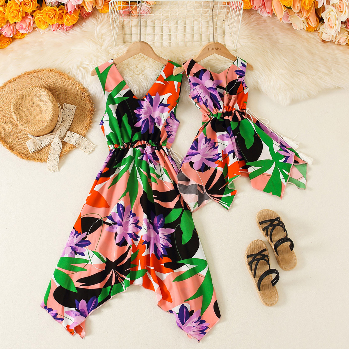 Elegant Floral Print Sleeveless Dress for Mom and Me Wholesale