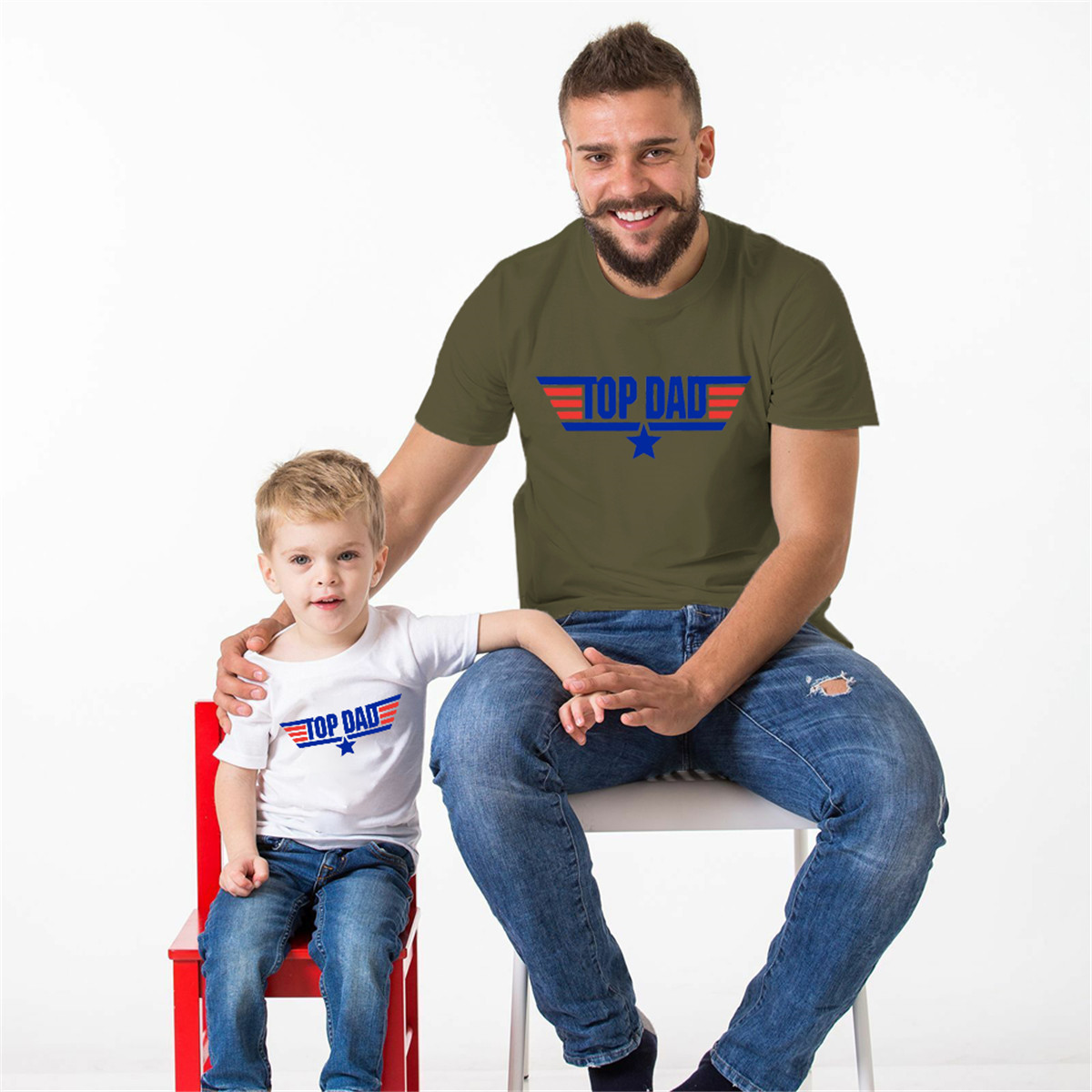 Causal Letter Pattern Print Matching Tees for Dad and Me Wholesale