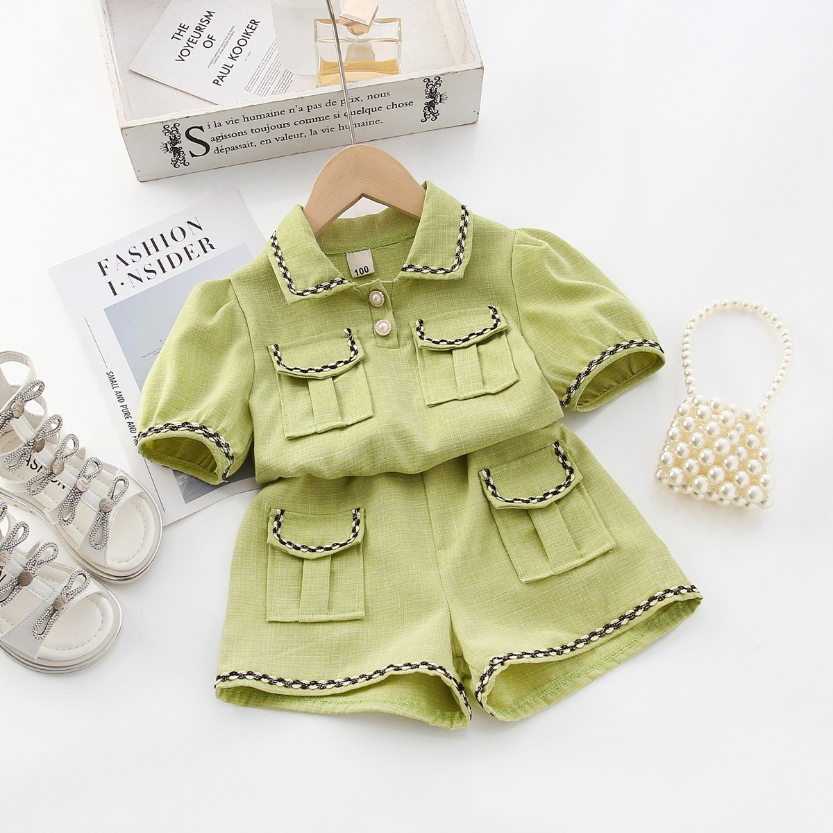 Toddler Girls Lapel Elegant Solid Top & Shorts Wholesale