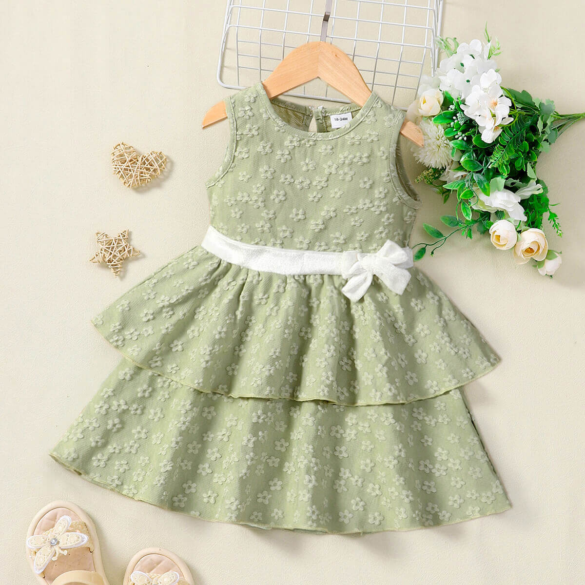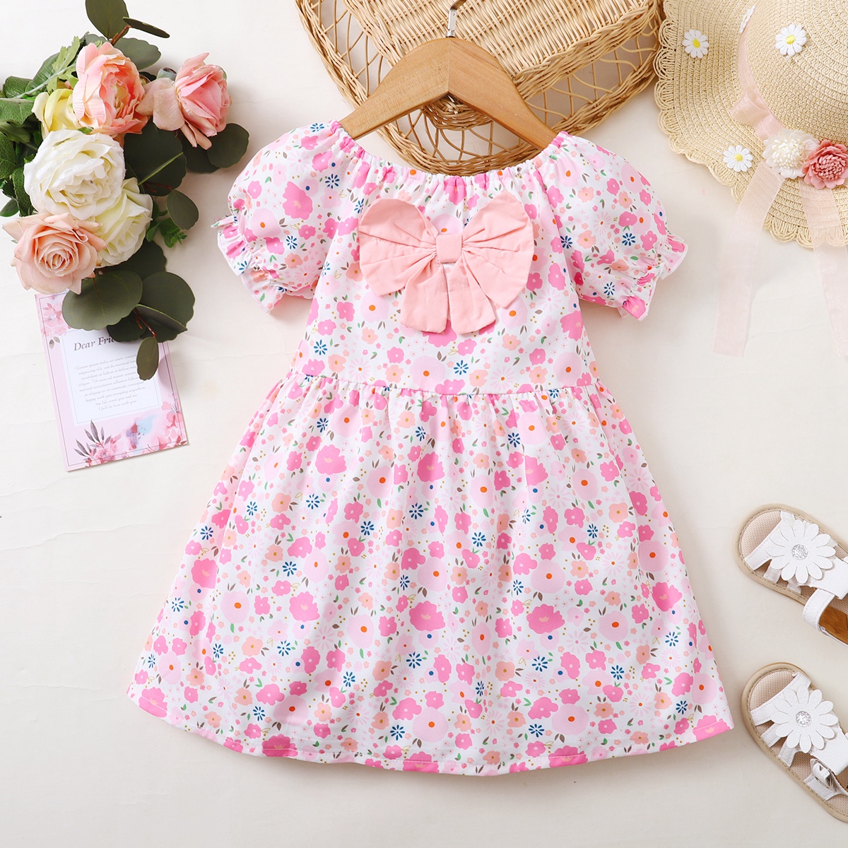 Toddler Girl Sweet Floral Bow Knot Decor Dress Wholesale