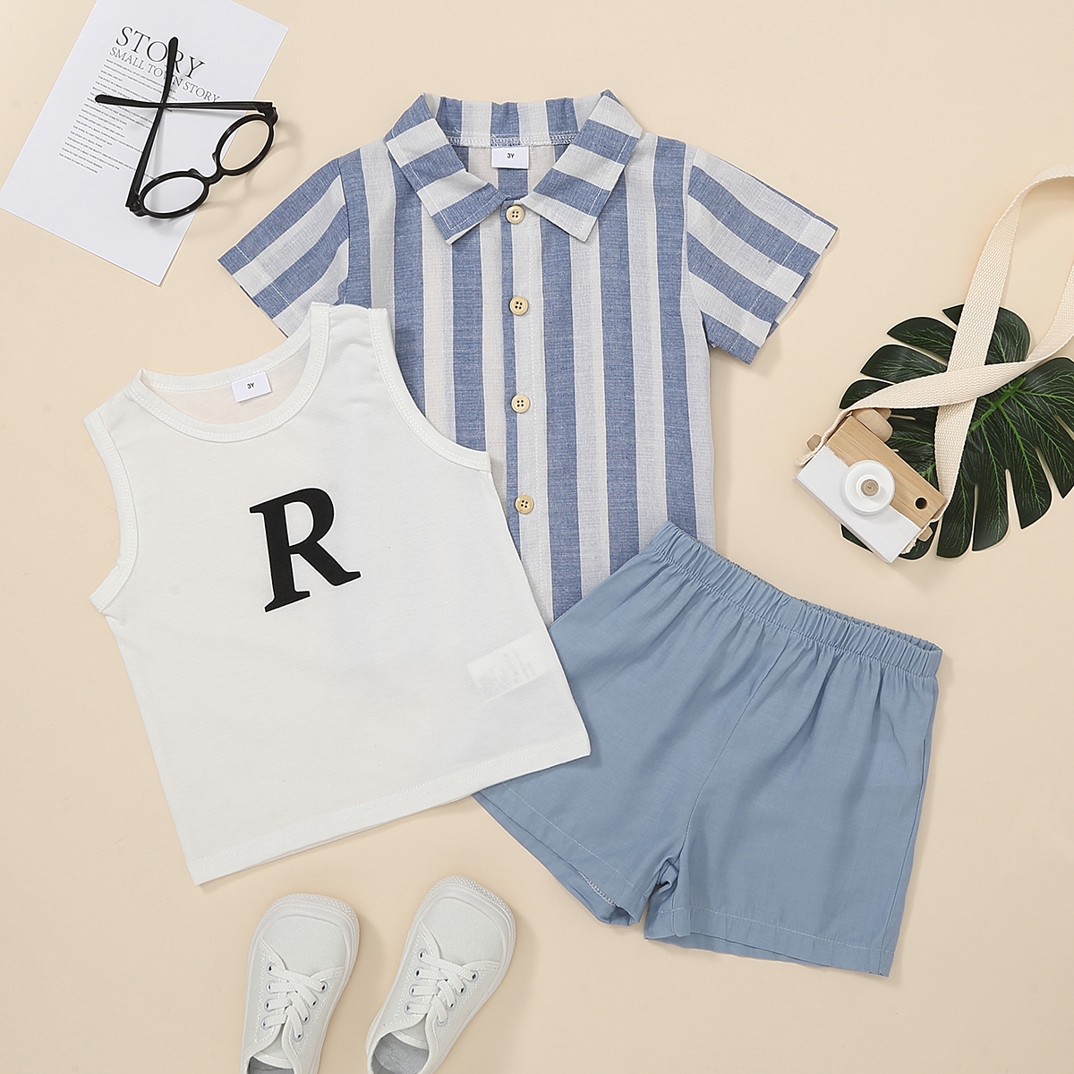 Toddler Boy Casual Striped Shirt & Tank Top & Shorts Wholesale