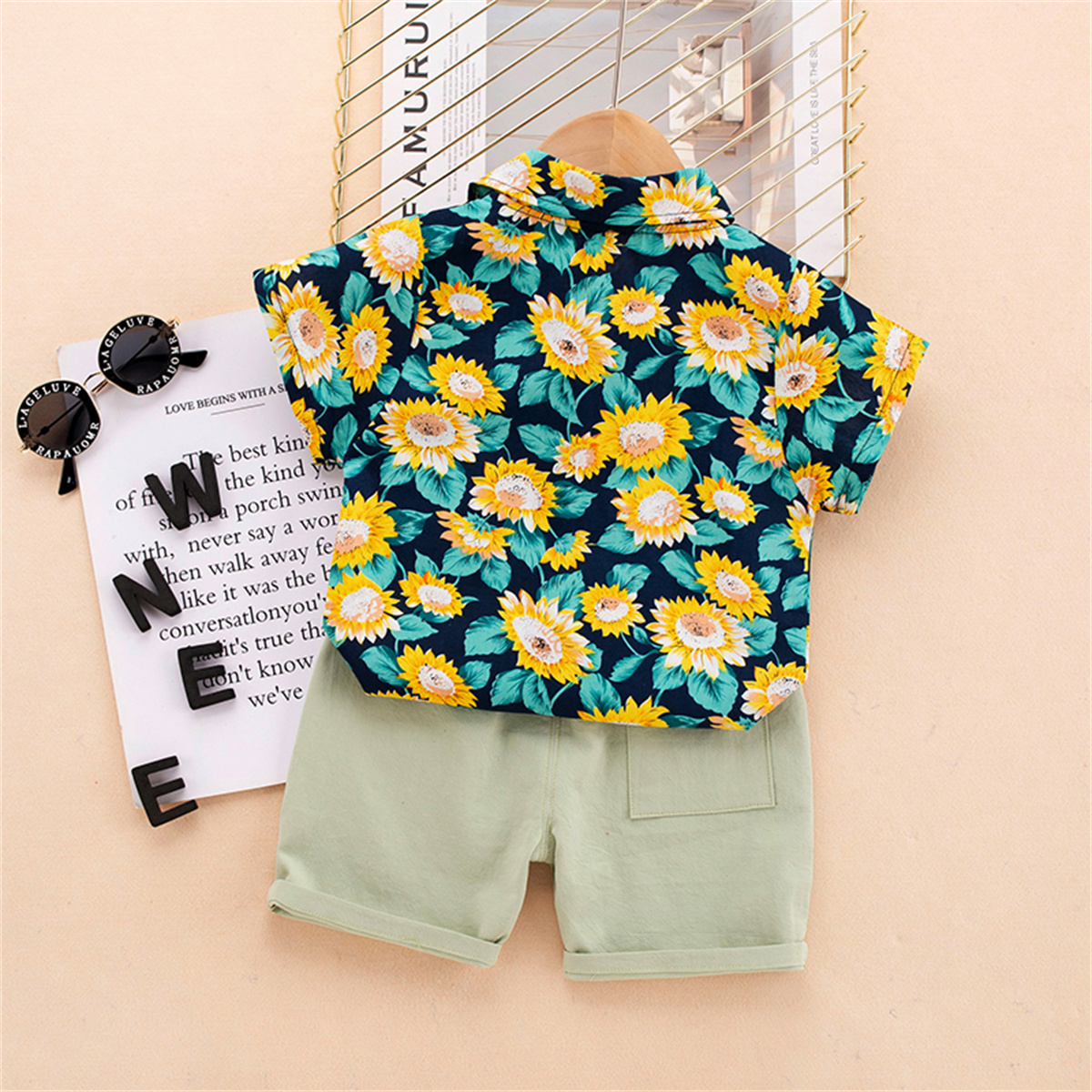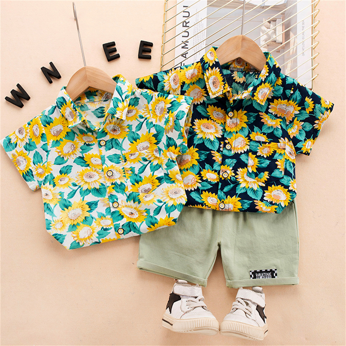 Toddler Boy Lapel Single-breasted Print Floral Sunflower Top & Shorts Wholesale