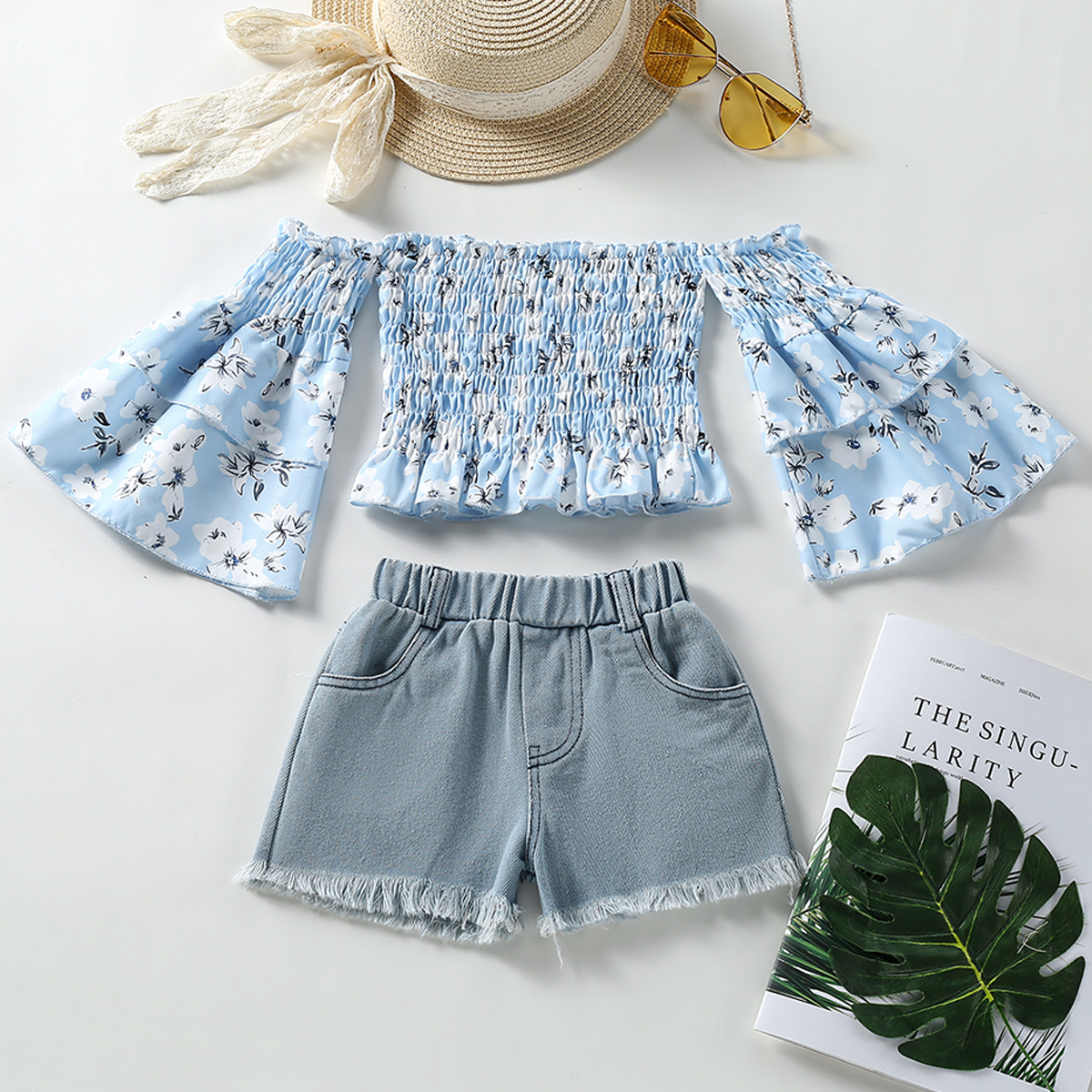 Toddler Girl Sweet Chiffon Floral T-shirt & Denim Shorts Wholesale