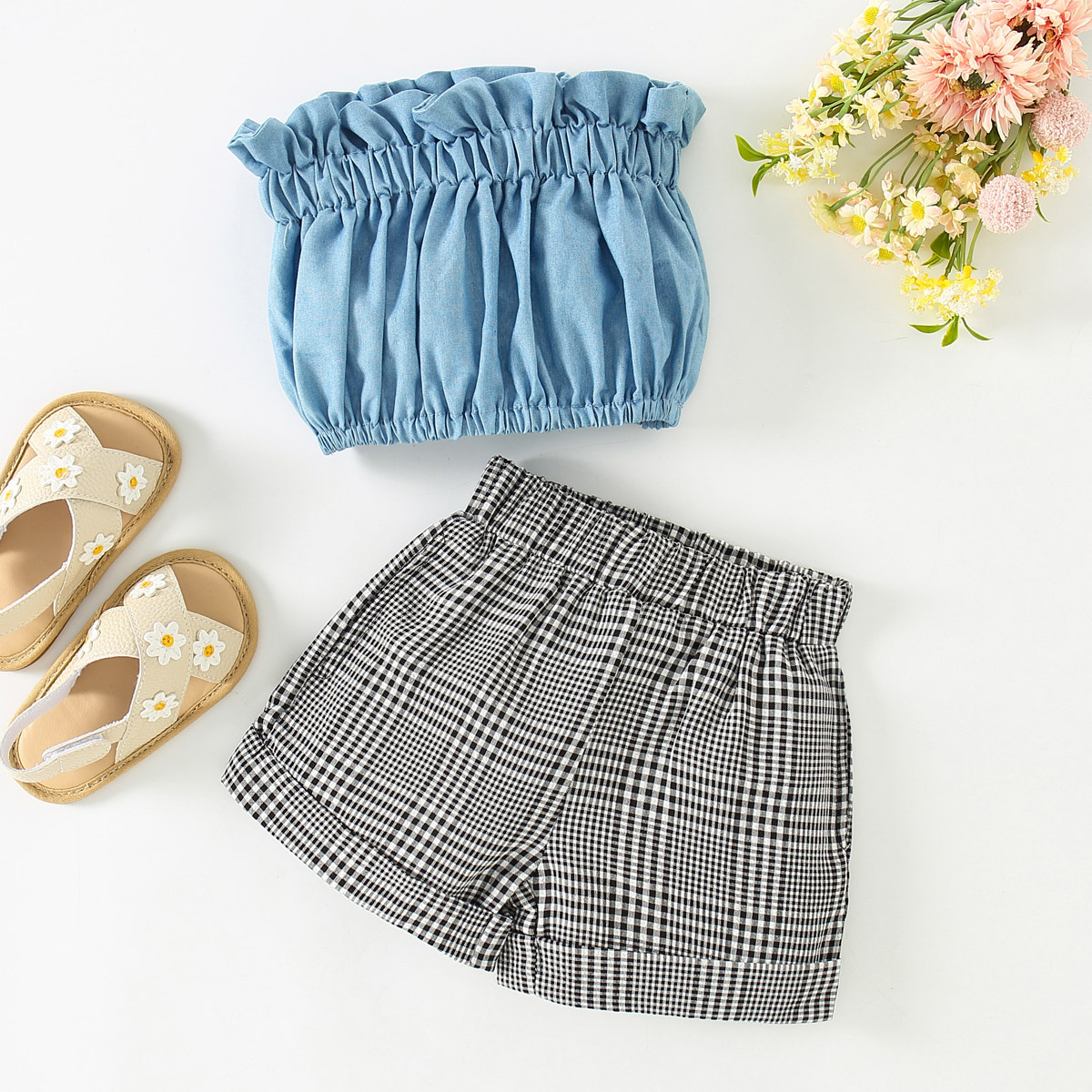Toddler Girl Fashion Sexy Plaid Strapless & Shorts Wholesale