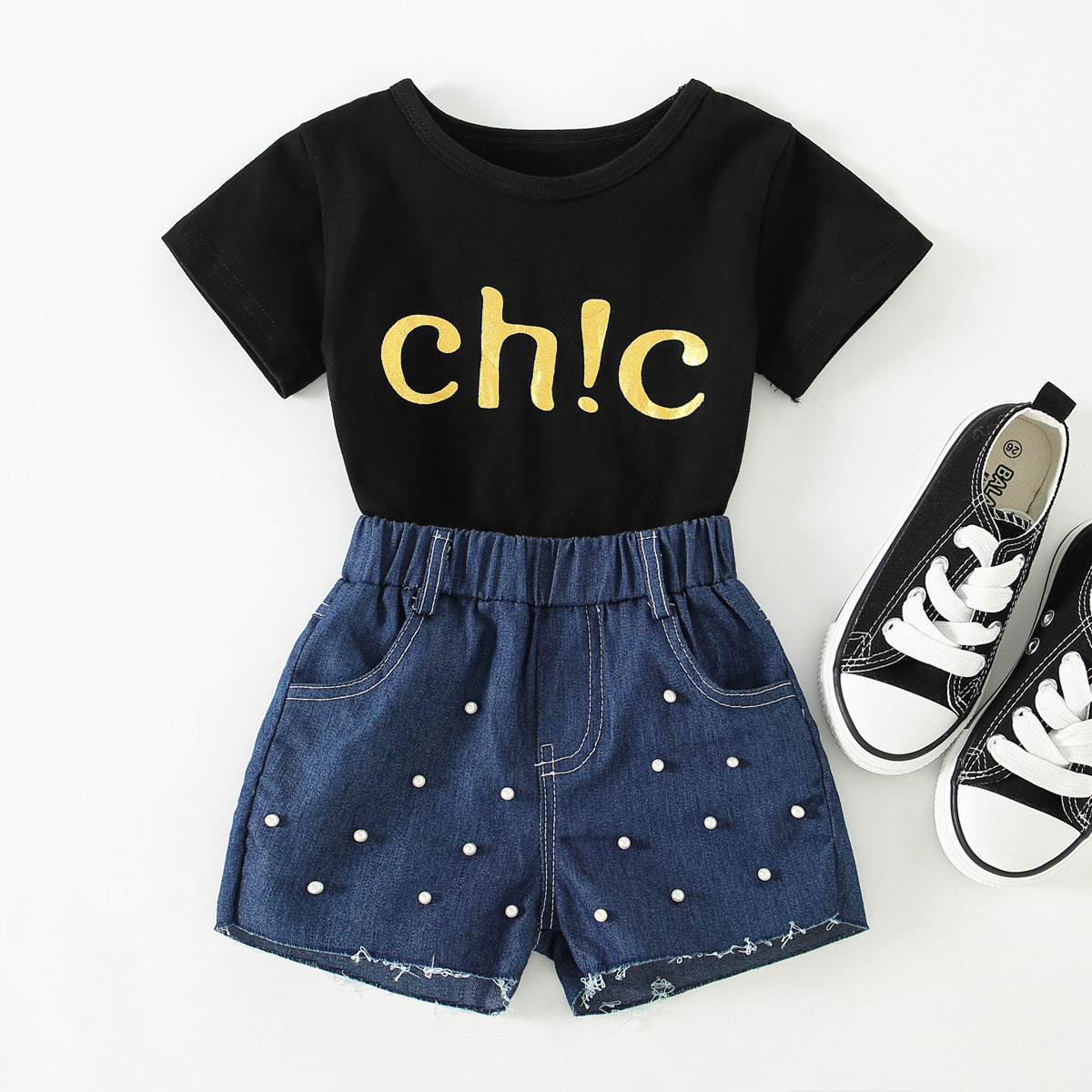 Toddler Girl Casual Letter Print T-shirt & Shorts Wholesale