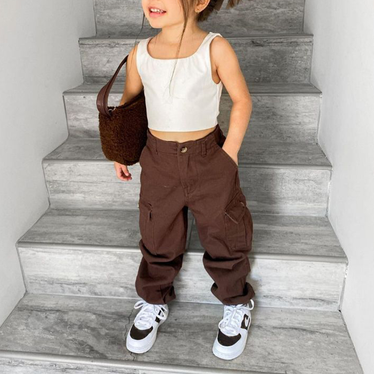 Toddler Girl Sport Style Solid Color Tank Top & Overalls Wholesale