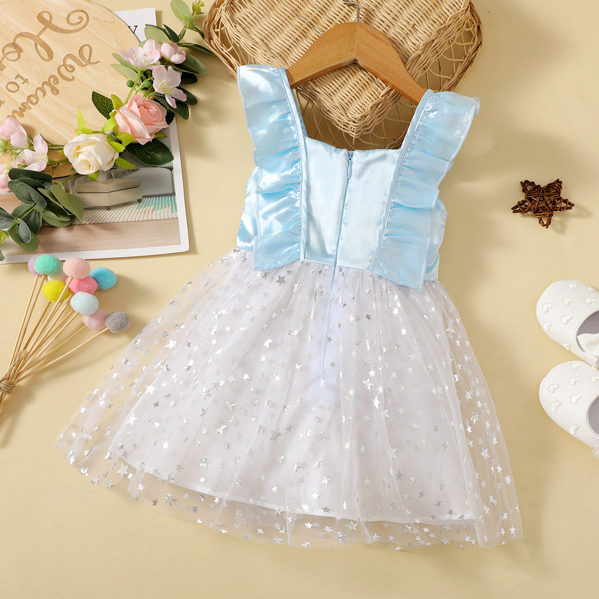 Toddler Girls Sweet Ruffled Sleeve Mesh Hem Tutu Dress Wholesale