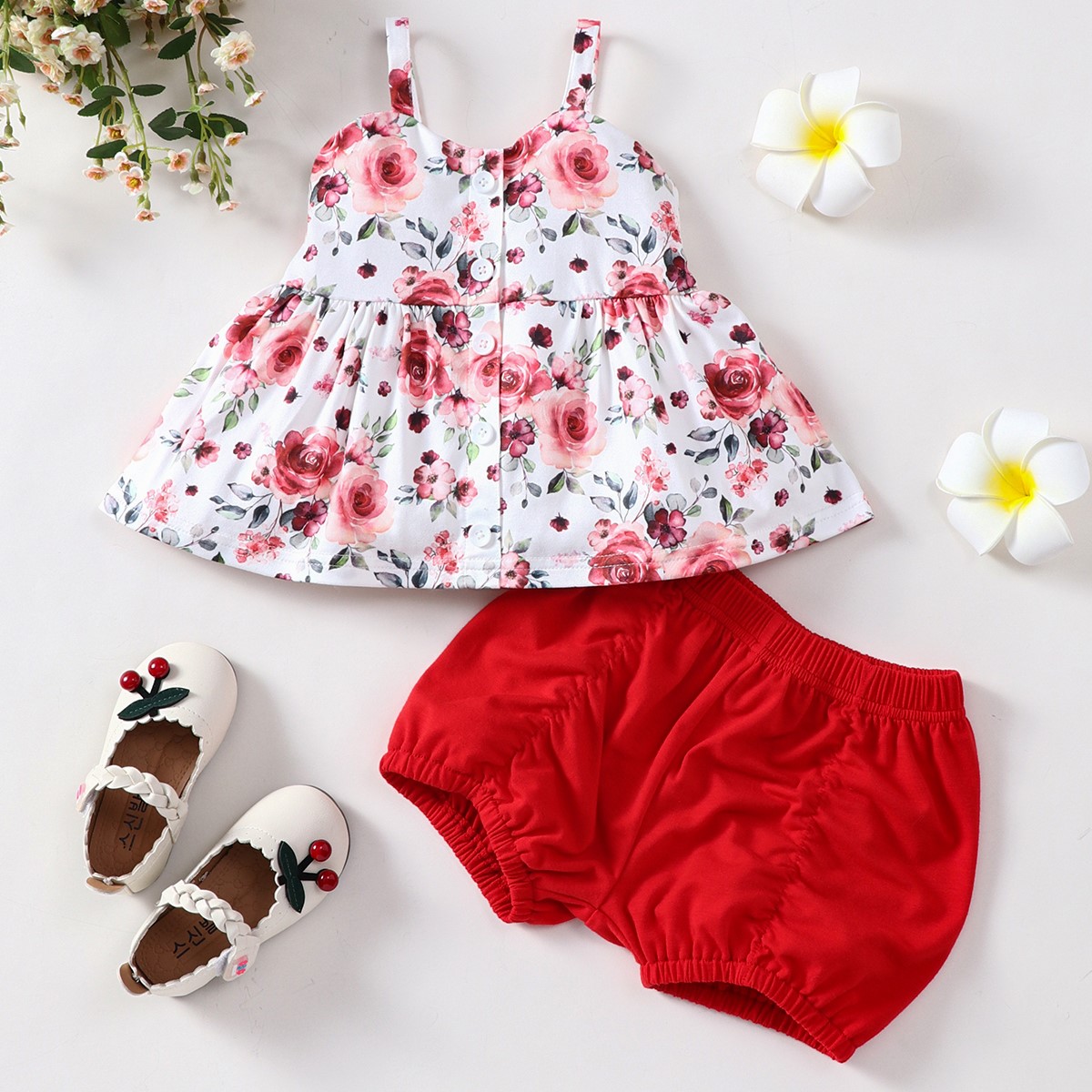 Baby Girl Sling Floral Top And Solid Short Wholesale