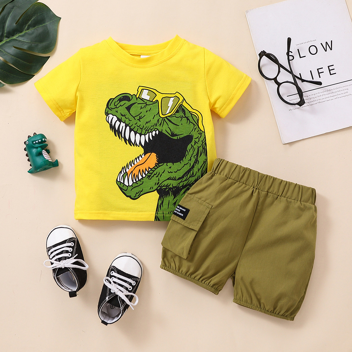 Toddler Boy Dinosaur Print Pocket Top & Shorts Wholesale