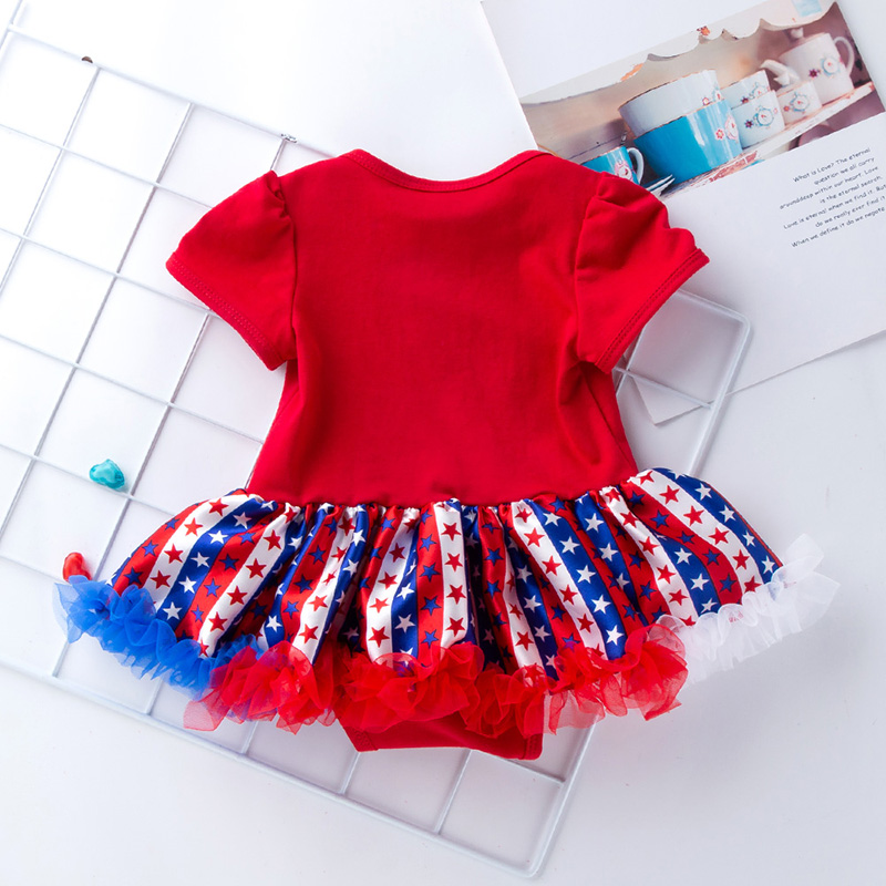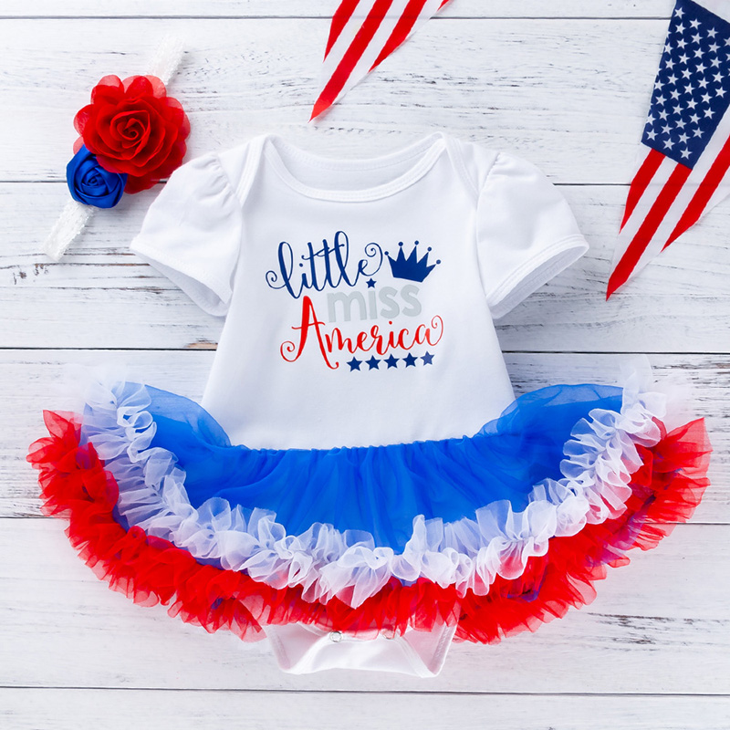 Baby Girl Independence Day Letter Pattern Mesh Tutu Hem Bodysuit & Headband Wholesale