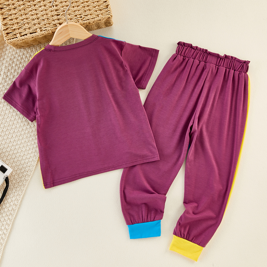 Kids Colour Block Pullover T-shirt & Pants Set Wholesale