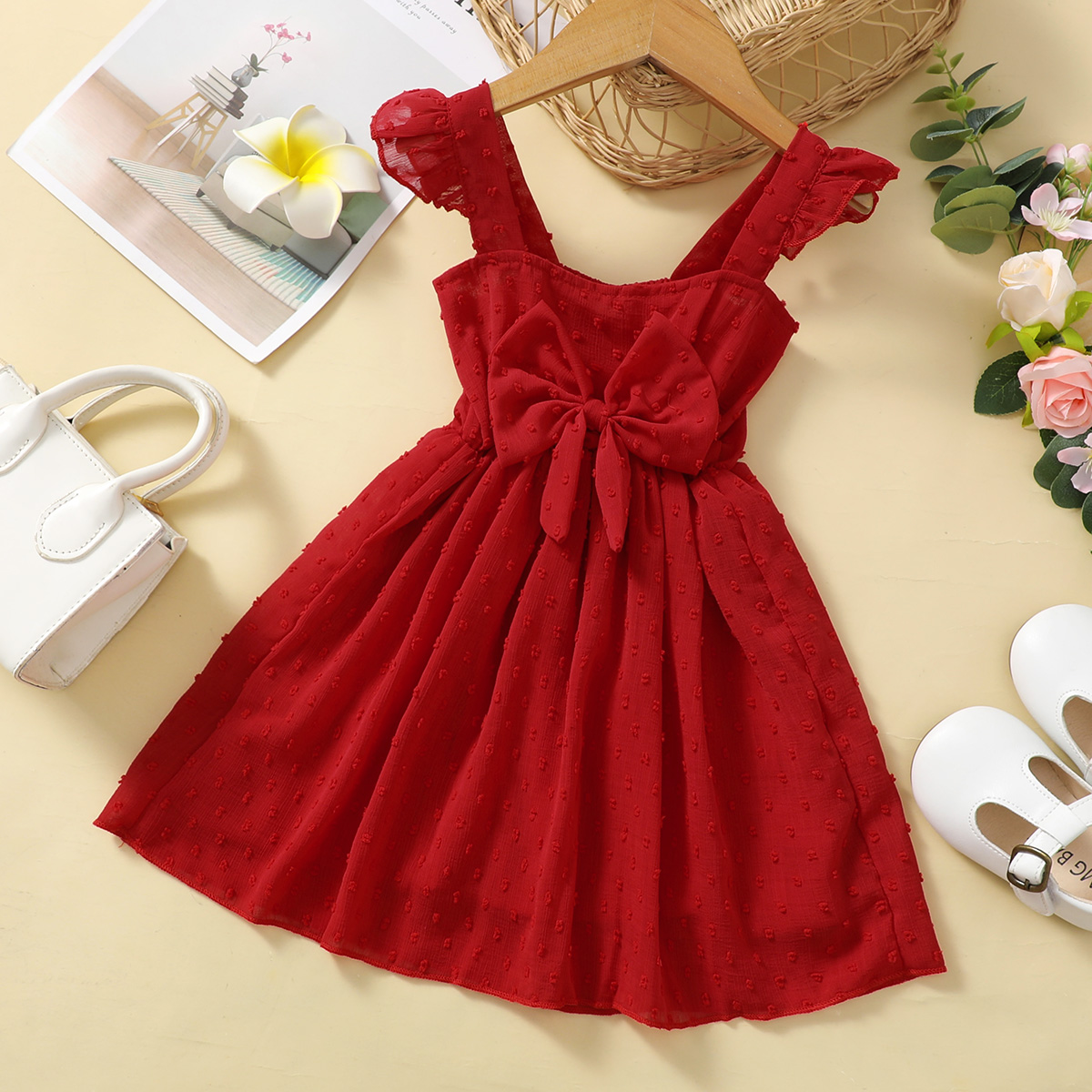 Toddler Girl Cute Sweet Bow Knot Decor Chiffon Dress Wholesale