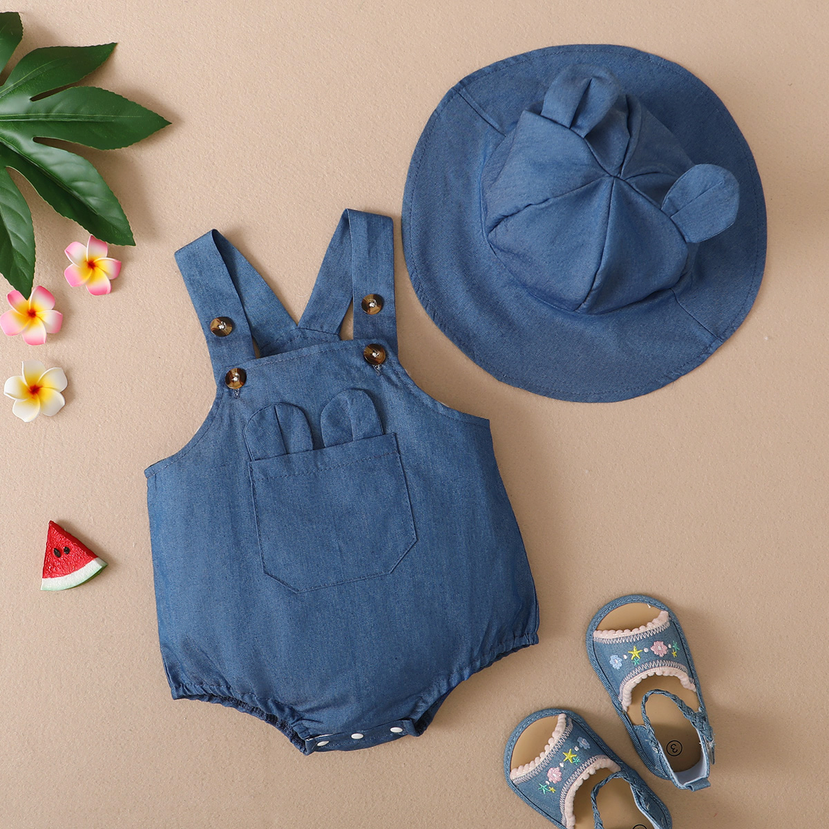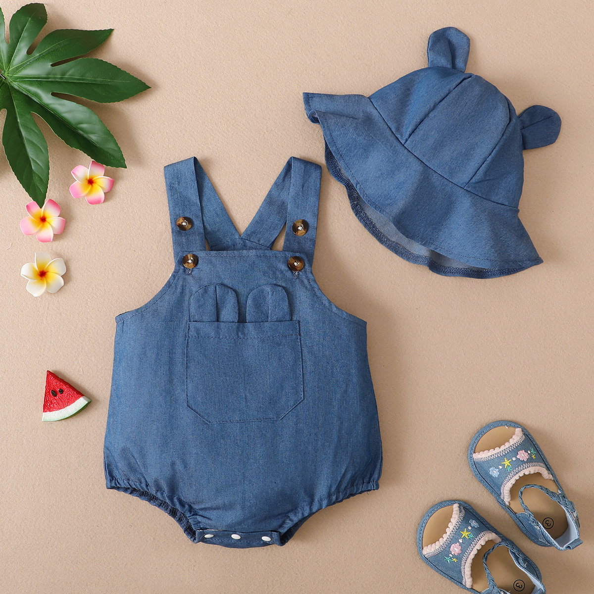 hibobi Baby Denim Three-Dimensional Ears Jumpsuit and Hat Wholesale