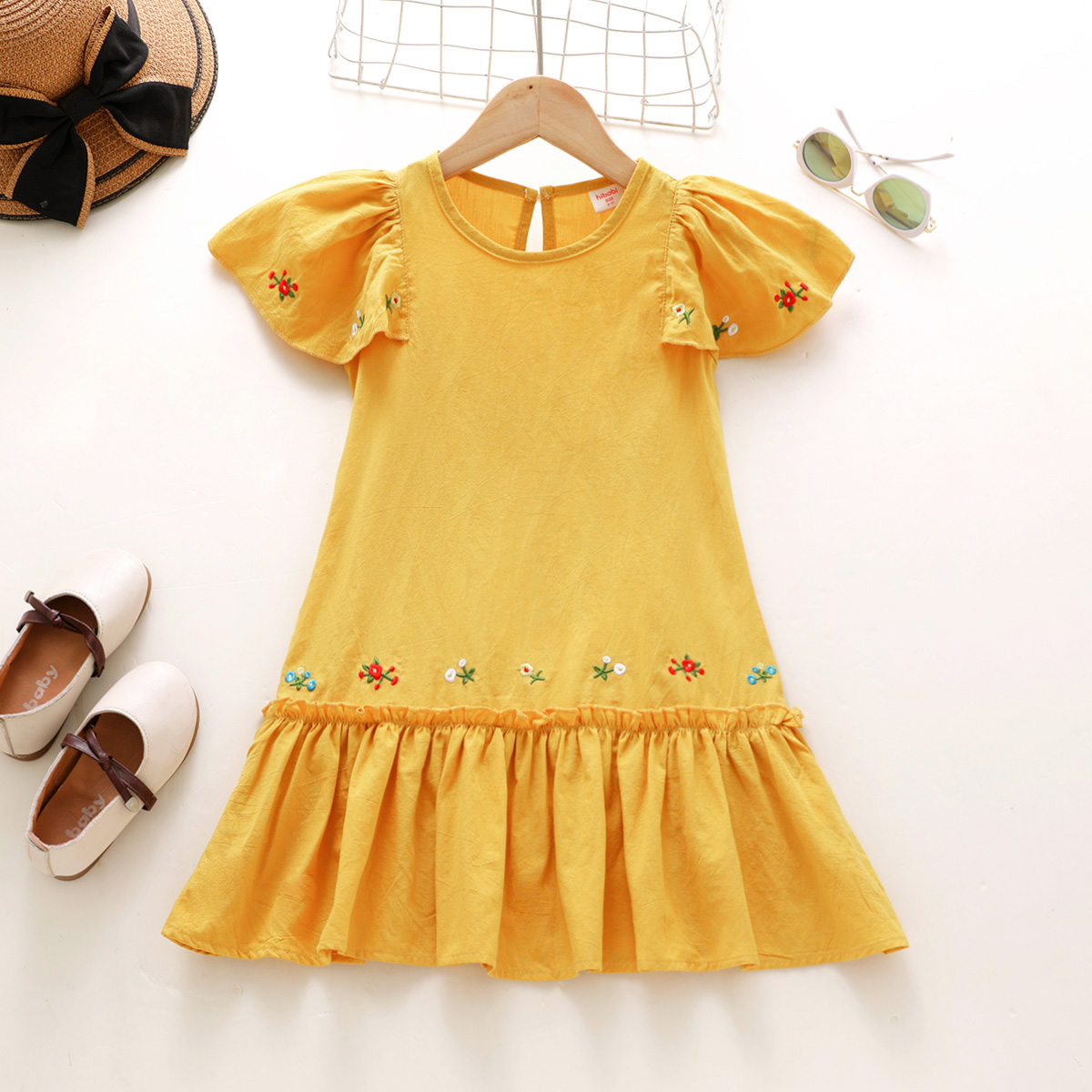 Toddler Girl Baby Solids Floral Yellow Lace Dress Wholesale
