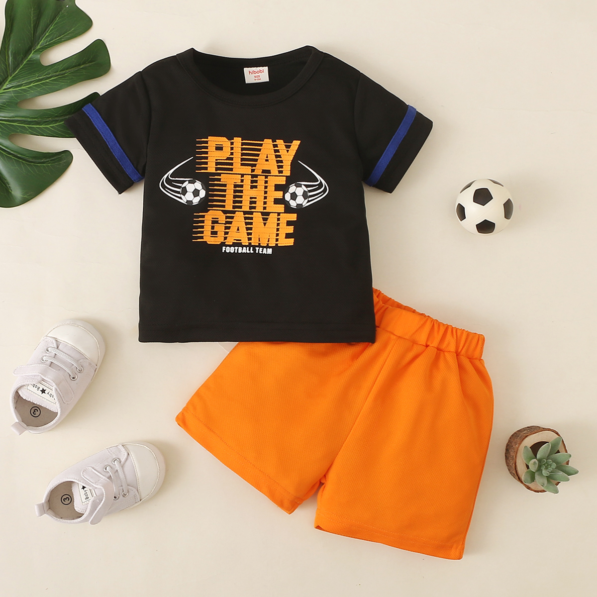 Toddler Boy Sports Style Football Letter Short Sleeve Set Wholesale