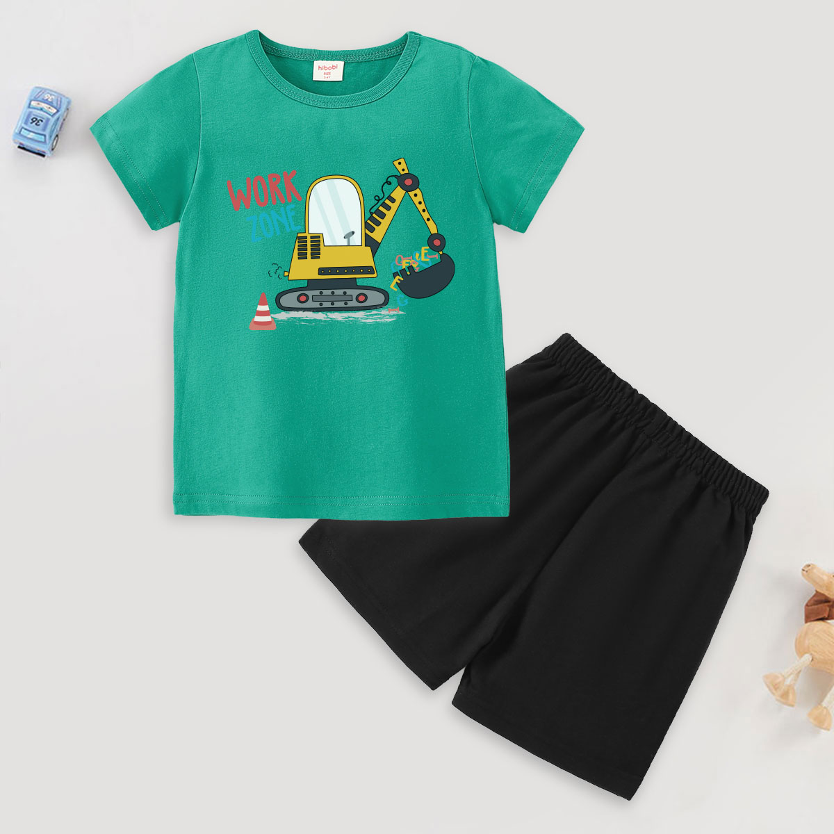 Toddler Boy Excavator Short Sleeve Suit Wholesale