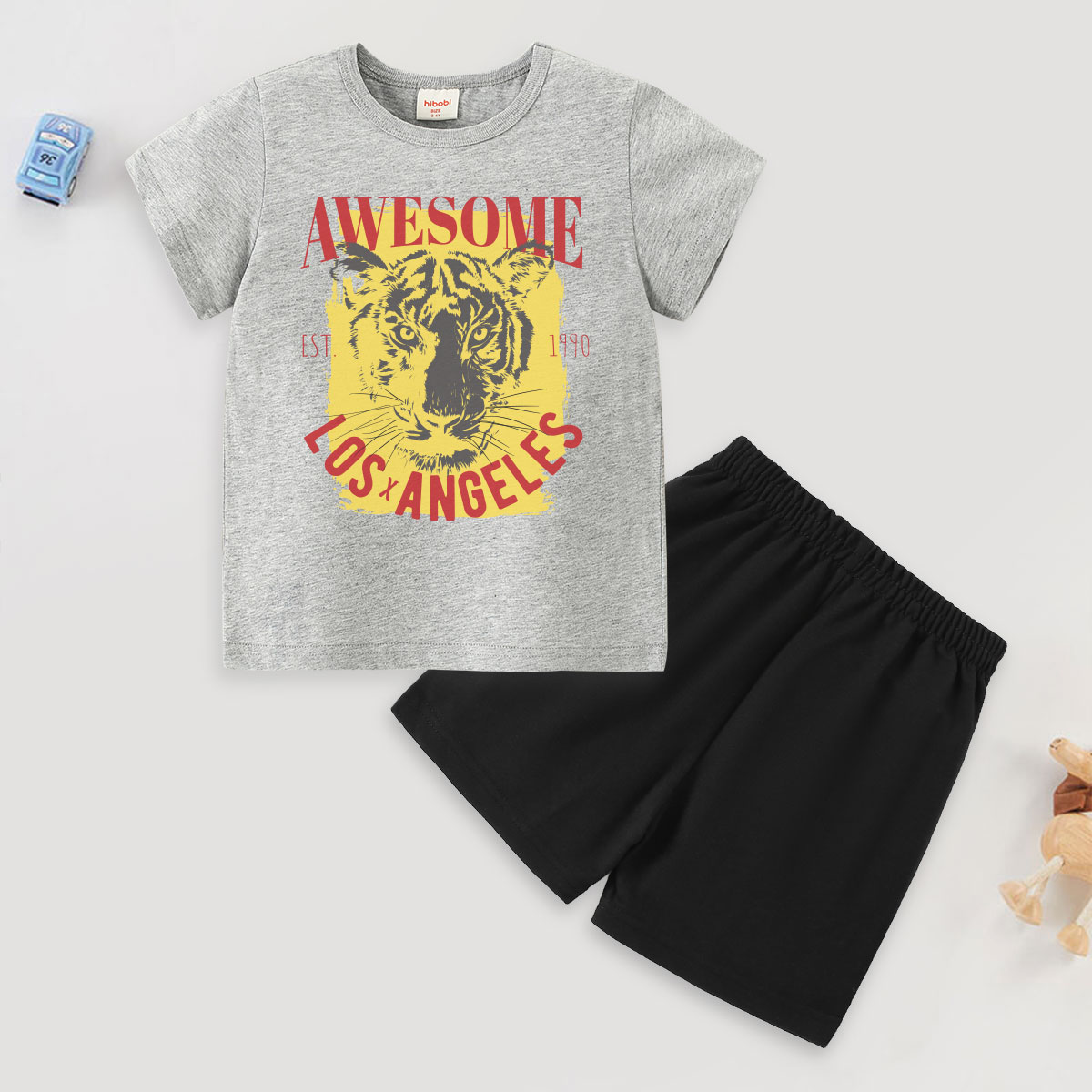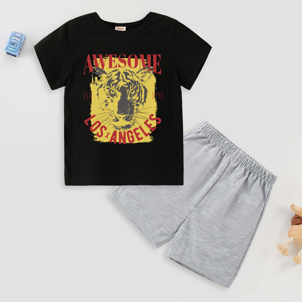 Toddler Boy Yellow Tiger Print T-shirt Suit Wholesale