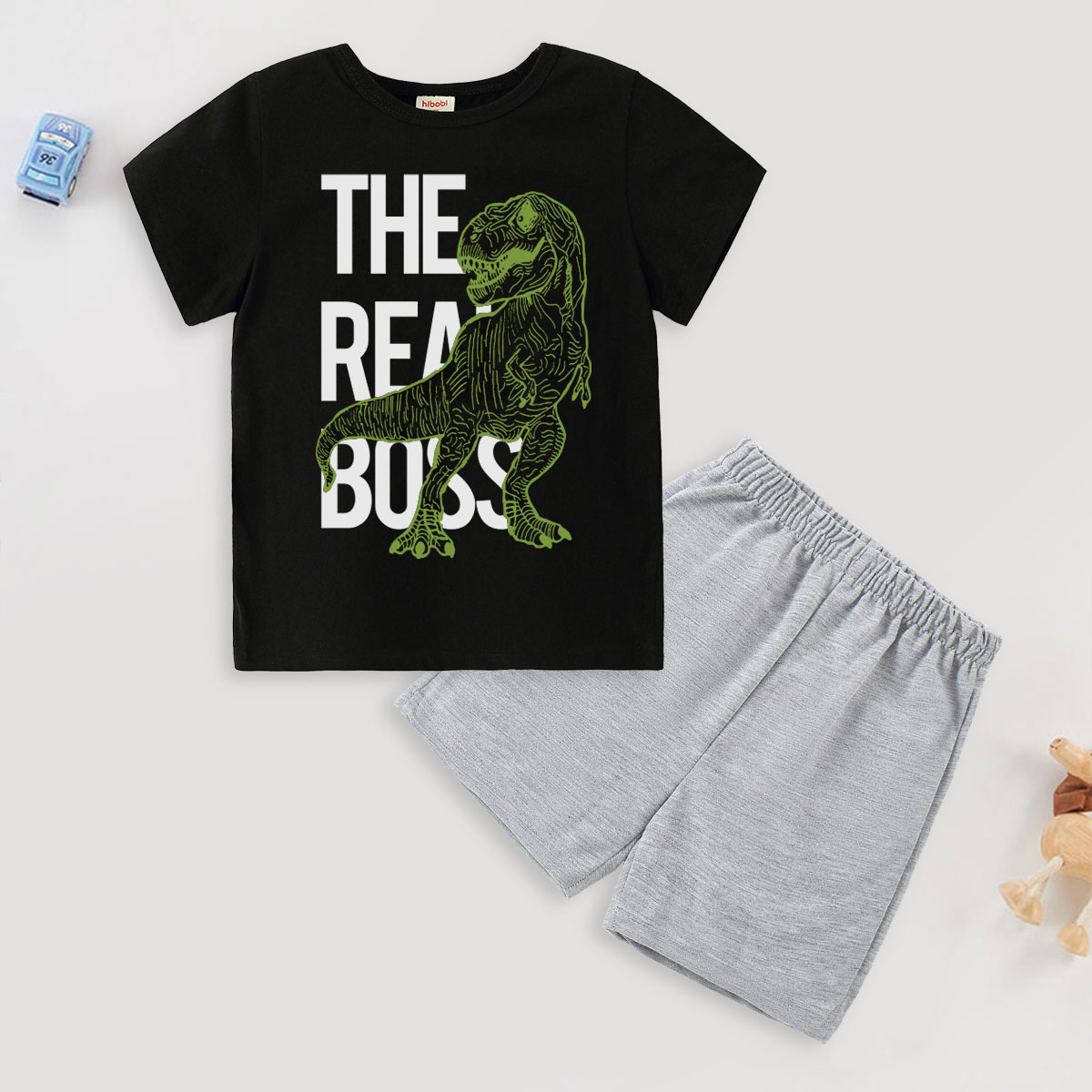 Toddler Boy Lettered Dinosaur Short Sleeve Set Wholesale