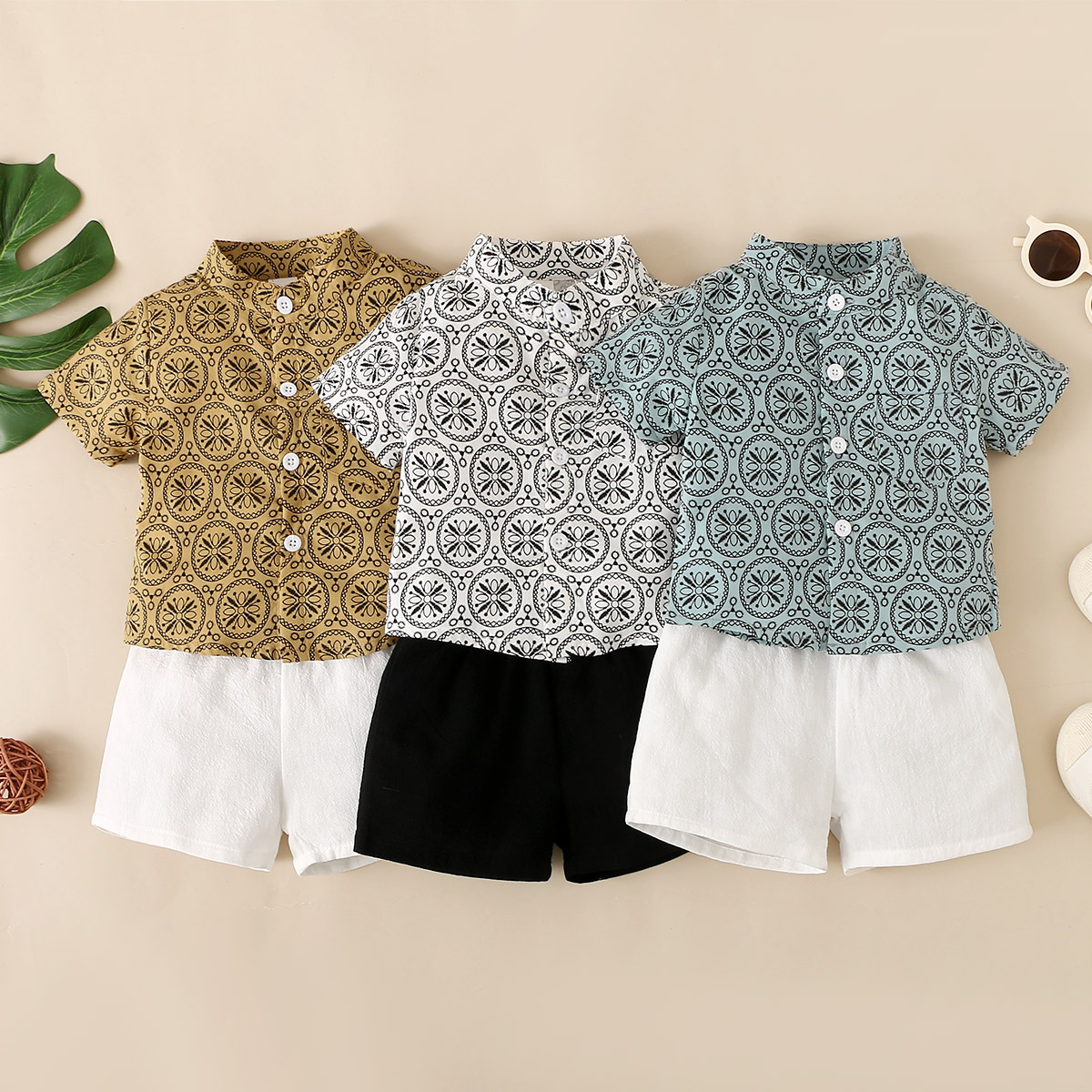 hibobi Boy Baby Stand Collar Short Sleeve Print Suit Wholesale