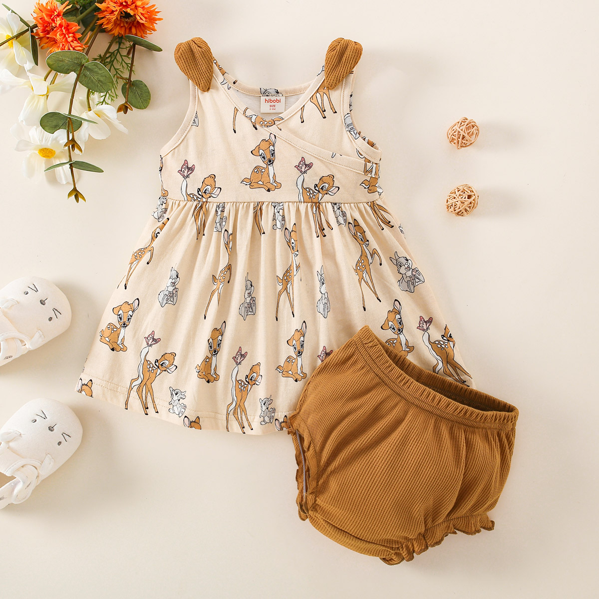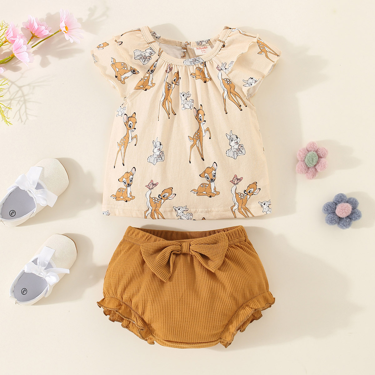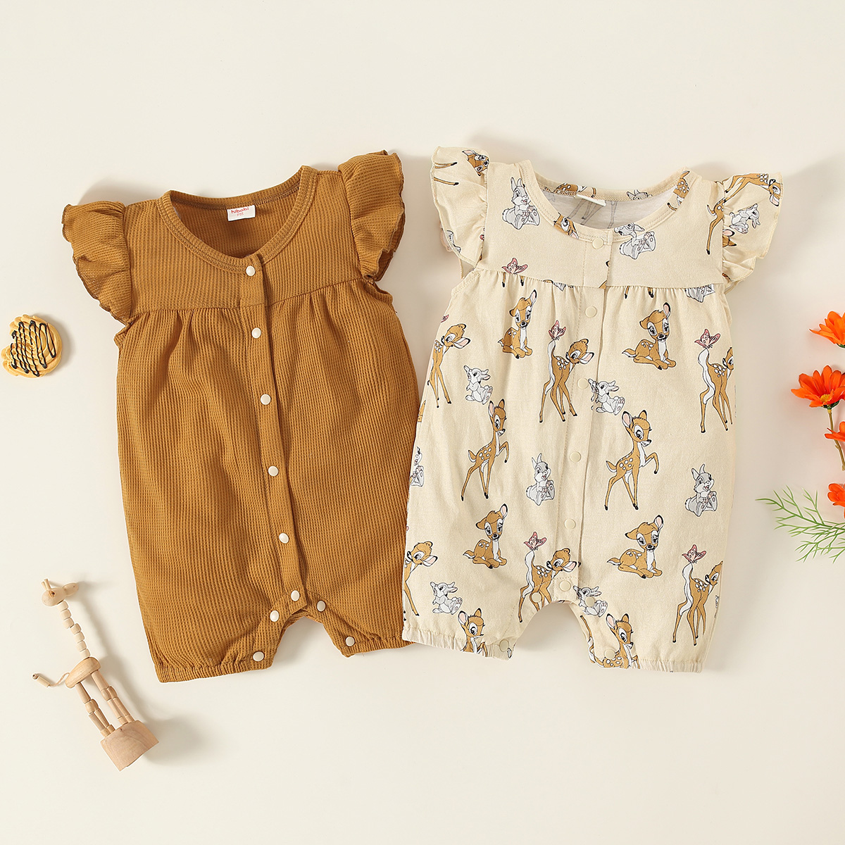 hibobi Girl Baby Fawn Print Fly-sleeve Bodysuits Wholesale