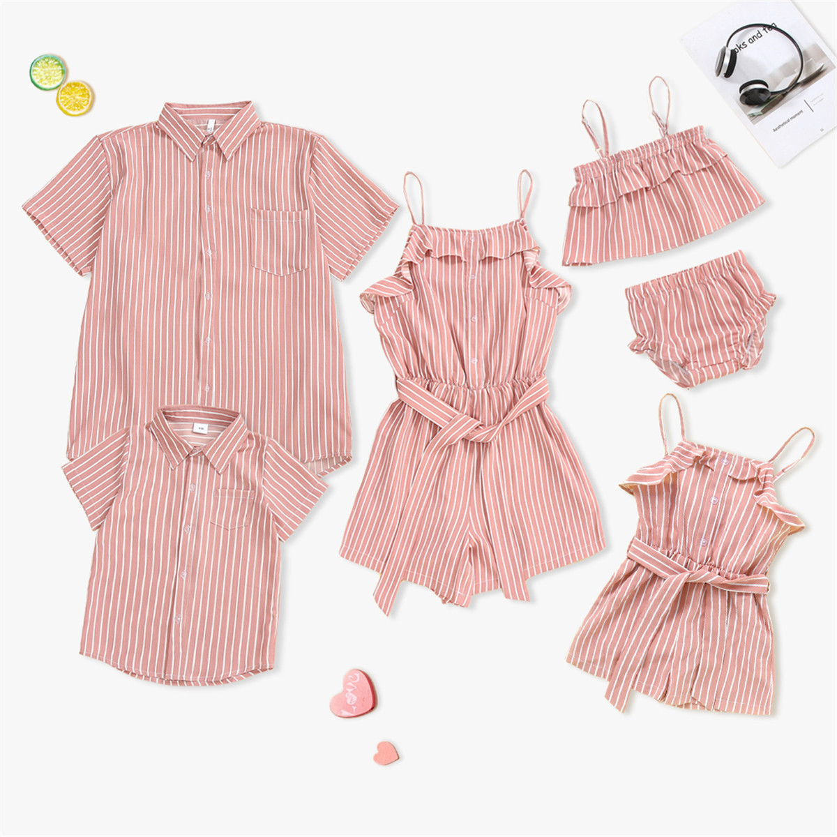 Family Matching Stripe Pattern Print Sleeveless Jumpsuit and T-shirt Wholesale